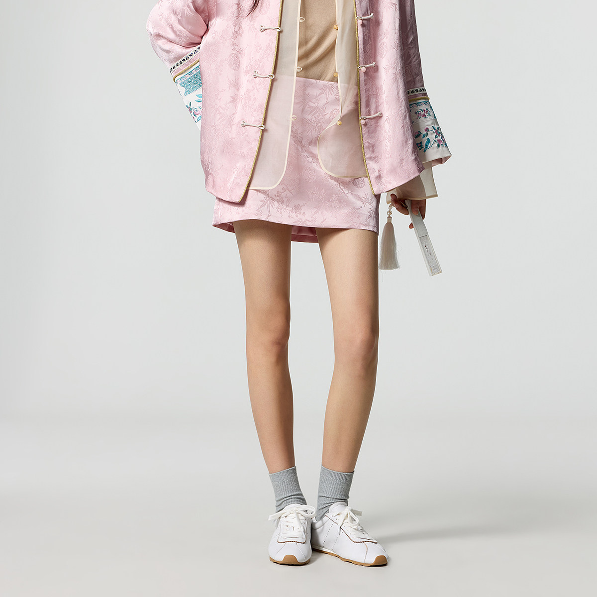 【新品】OCHIRLY欧时力缎面提花新中式a字半身裙短裙带打底25秋冬
