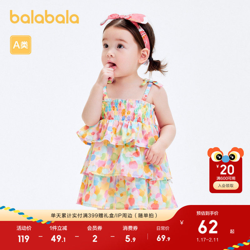 巴拉巴拉婴儿连衣裙女童裙子宝宝公主裙小童吊带裙新款夏装俏皮萌