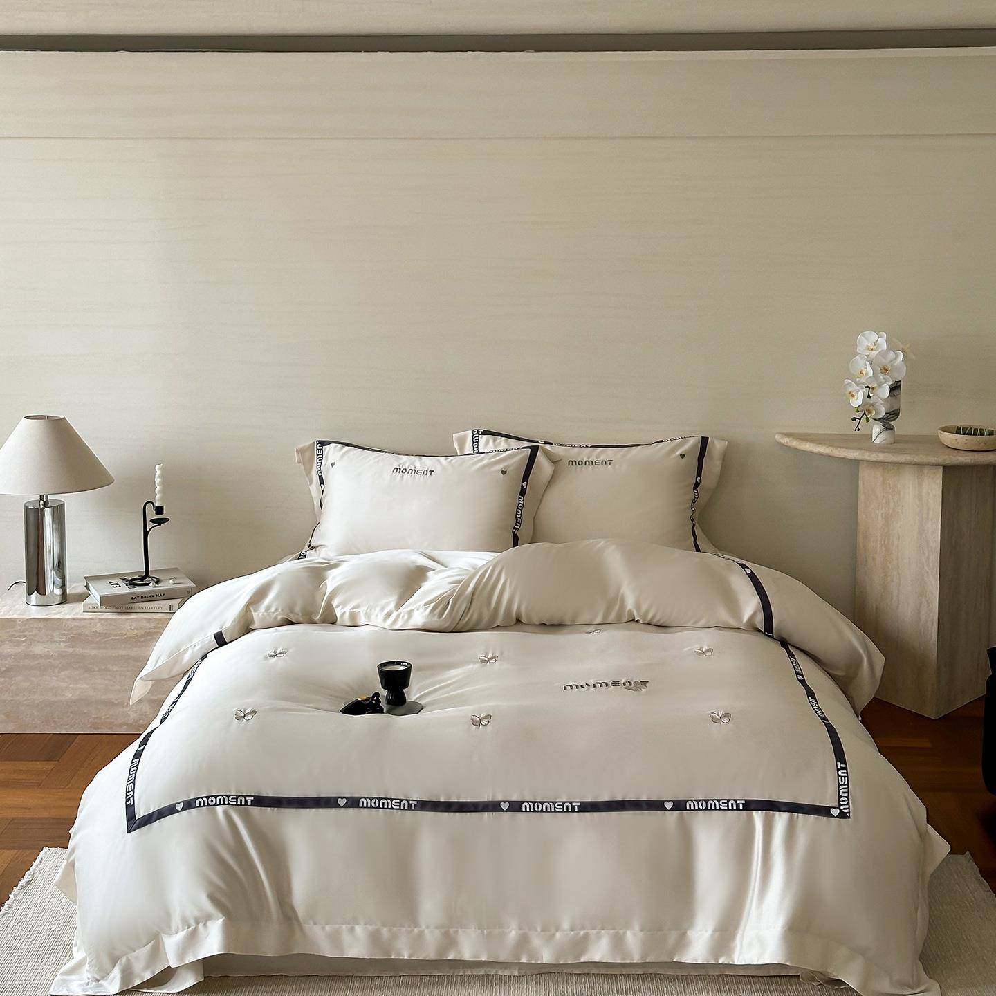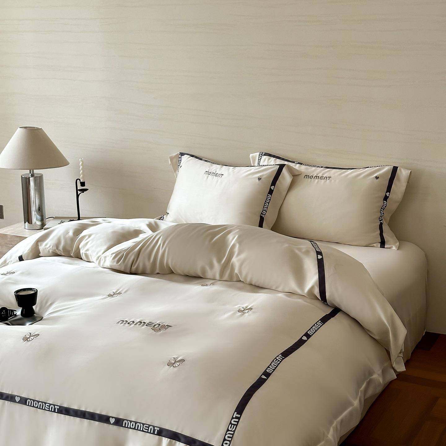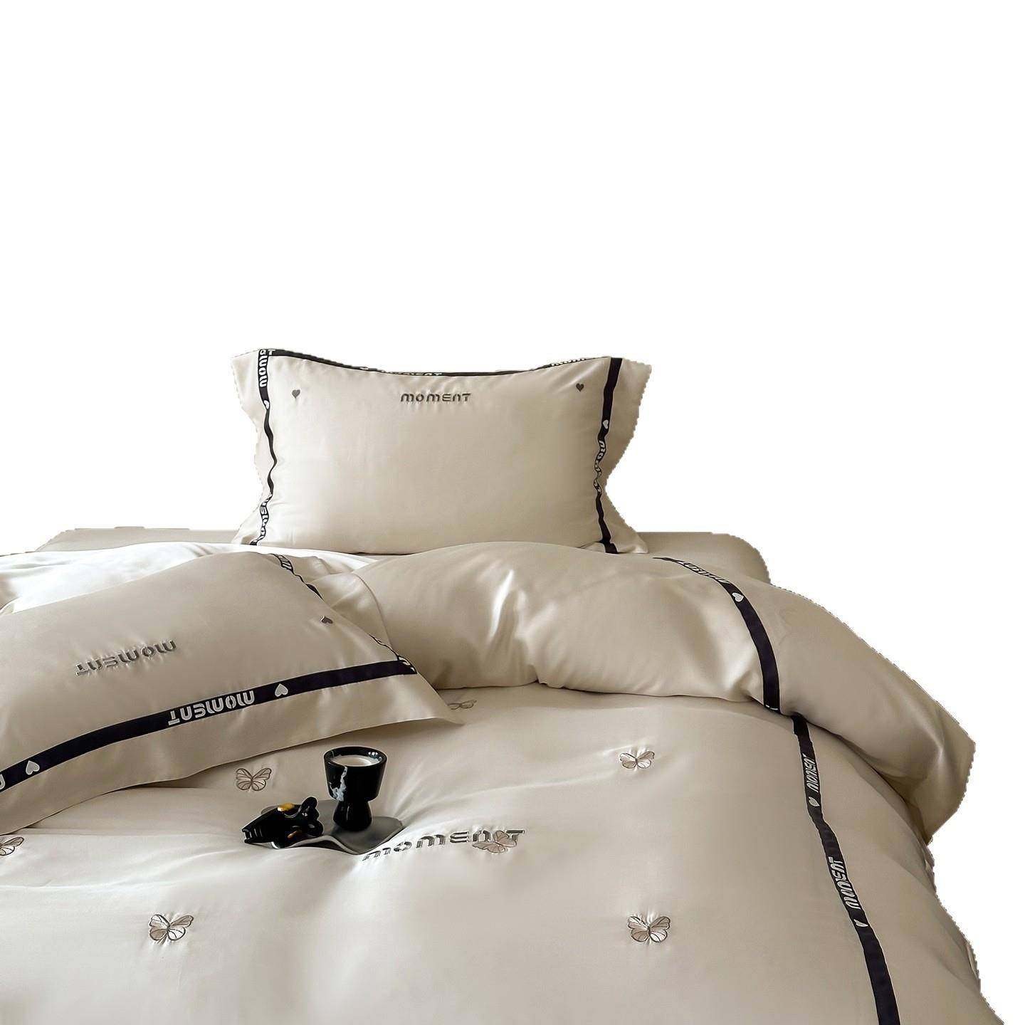 轻奢60S兰精天丝四件套少女心夏季超柔刺绣冰丝凉感被套裸睡床品