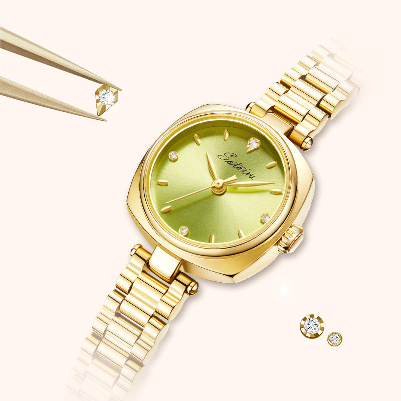 【圣缇斯玫瑰方糖】手表气质轻奢镶钻时尚小方表女士表2024