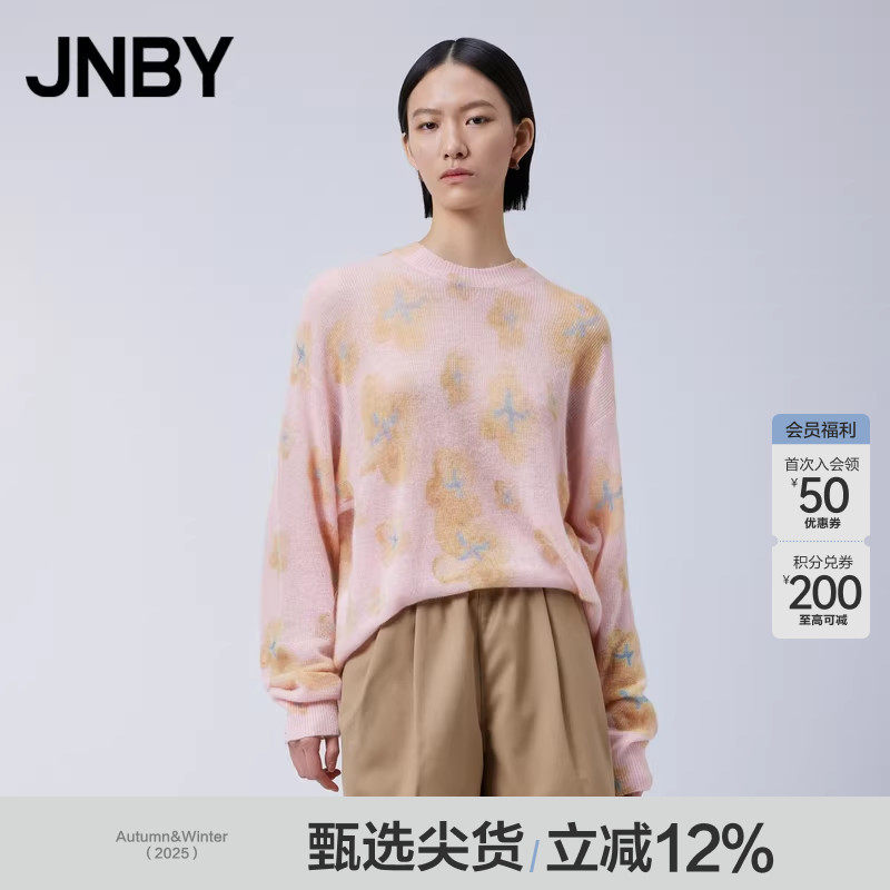 JNBY/江南布衣春季女装马海毛针织衫绵羊毛宽松圆领长袖套头毛衫