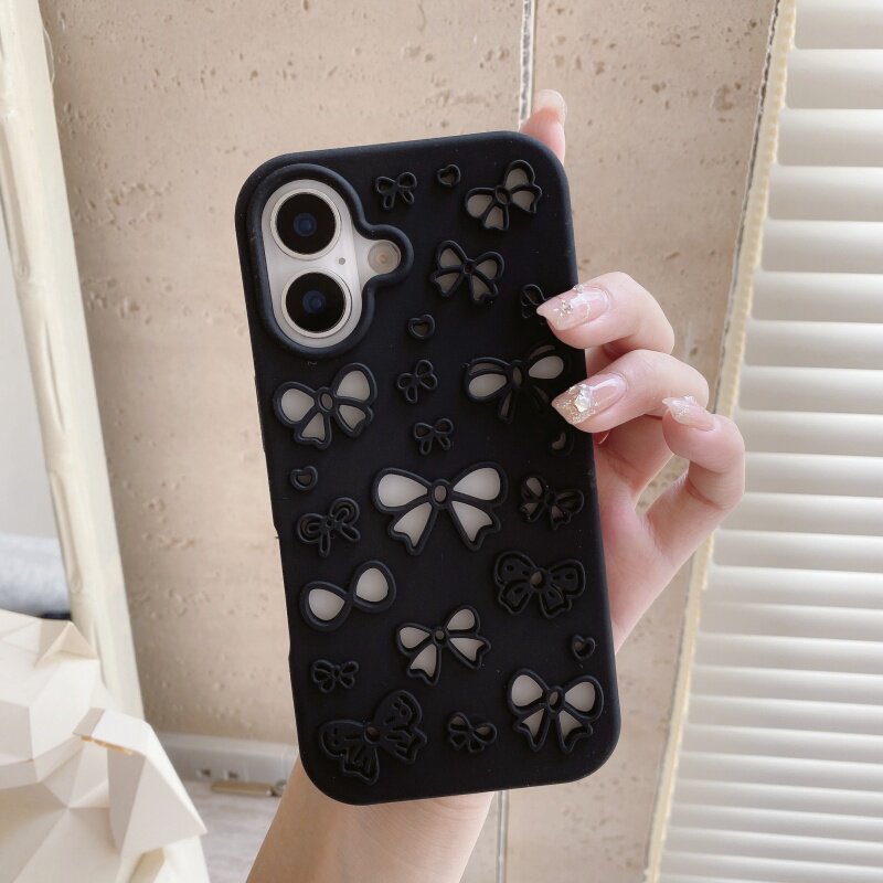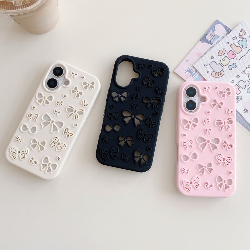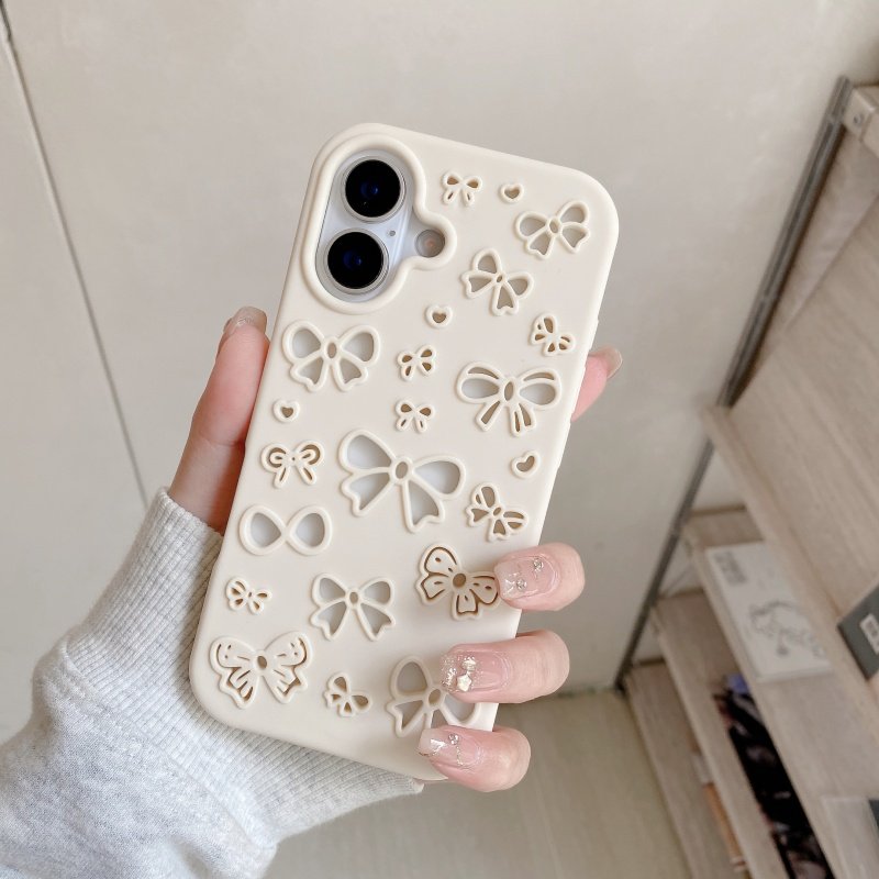 ins日韩可爱镂空蝴蝶结手机壳适用iPhone17promax保护套iPhone16pro女款14pro半包外壳13promax散热15promax