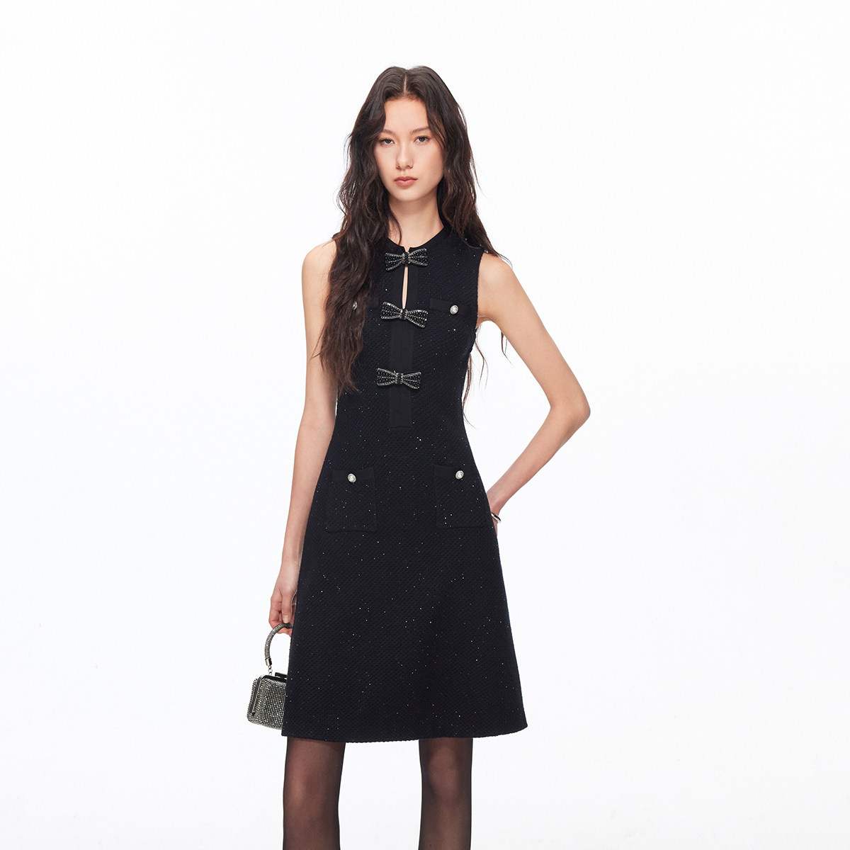 Vero Moda连衣裙女2026春季新款含绵羊毛无袖蝴蝶结小香风连衣裙