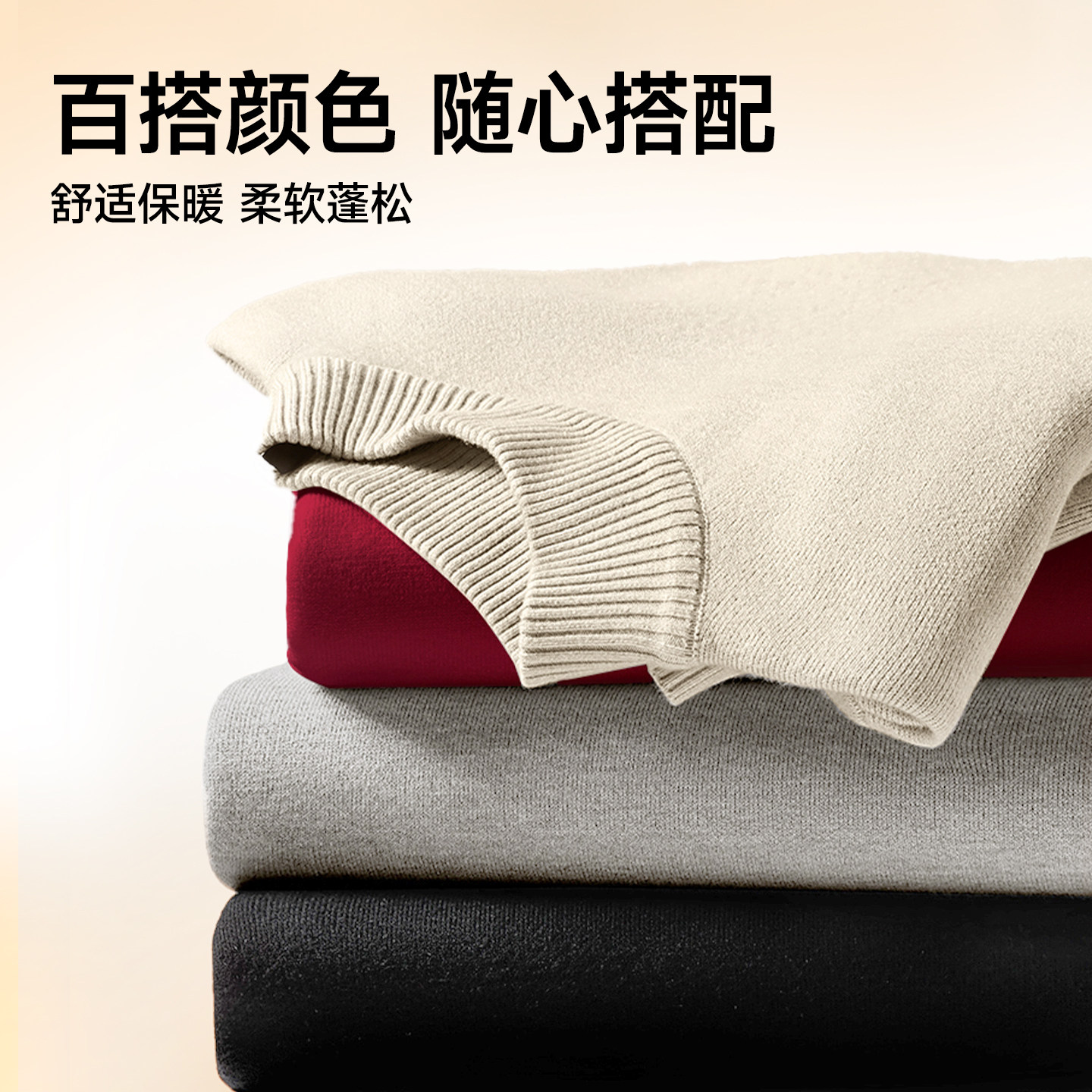 森马毛衫男冬季含羊绒红色针织衫发热抑菌新款基础圆领黑色打底衫