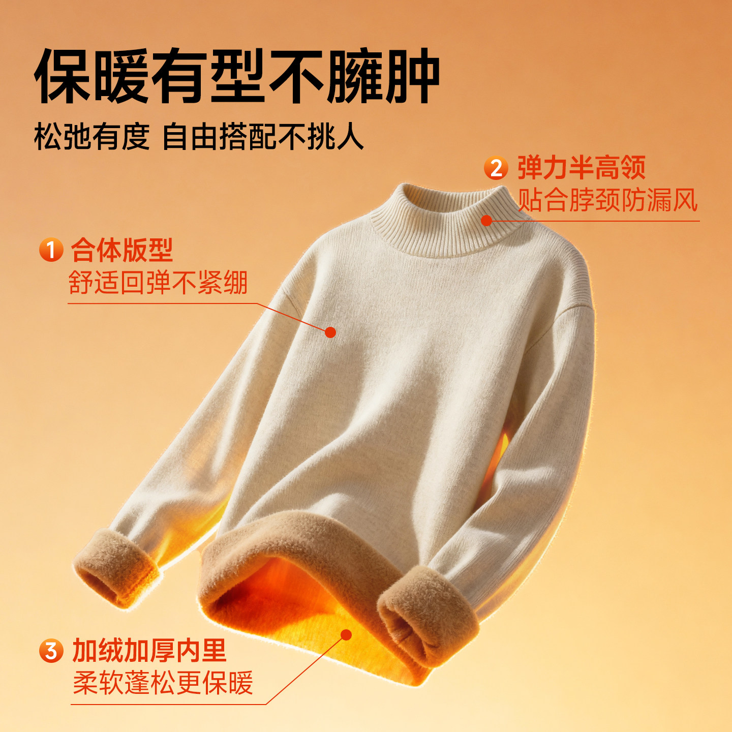 猫人流行圆领加绒毛衣2025冬季纯色高级红色一体绒男女同款毛衫Y