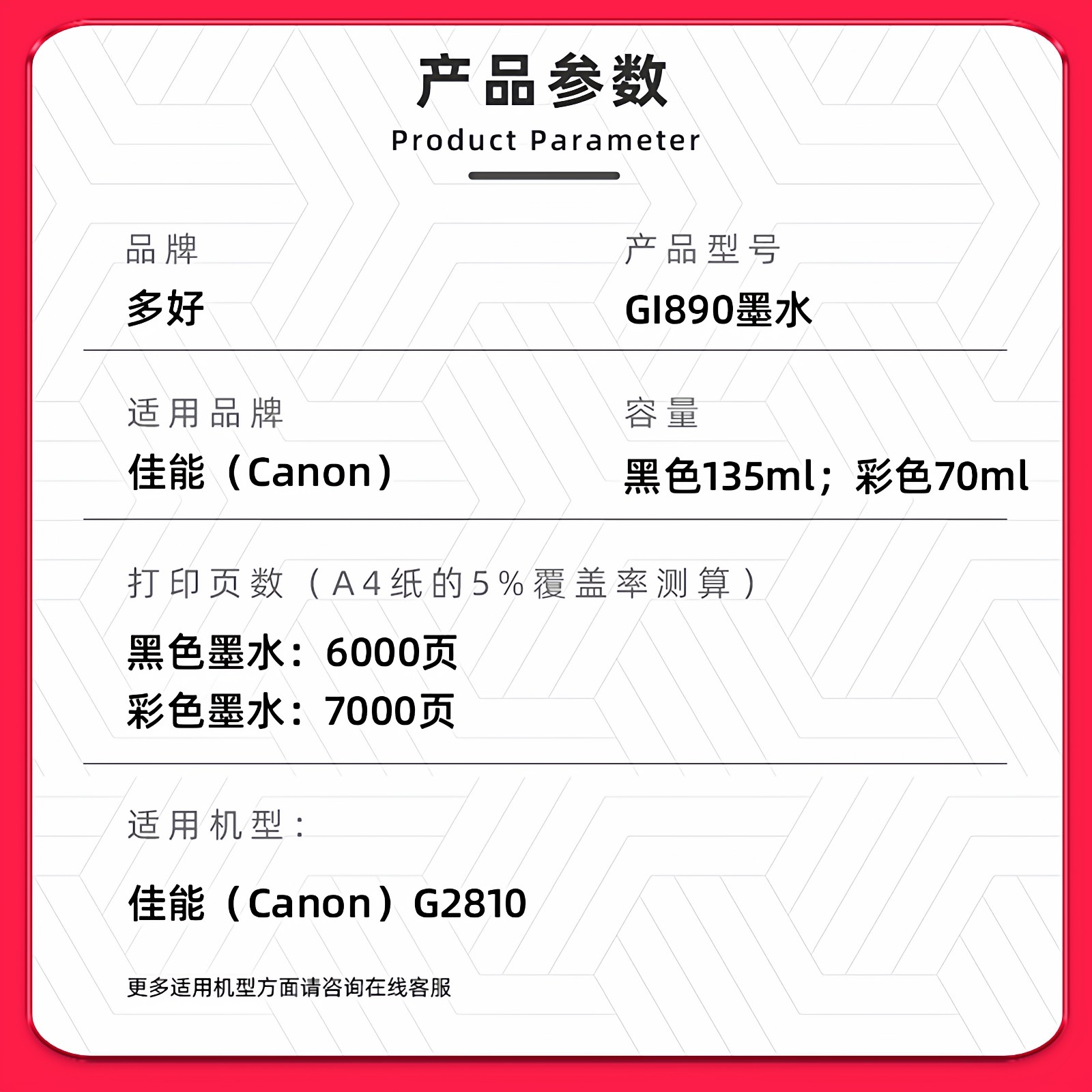 【多好原装G2810墨水】适用佳能/Canon打印机墨水G2810黑色