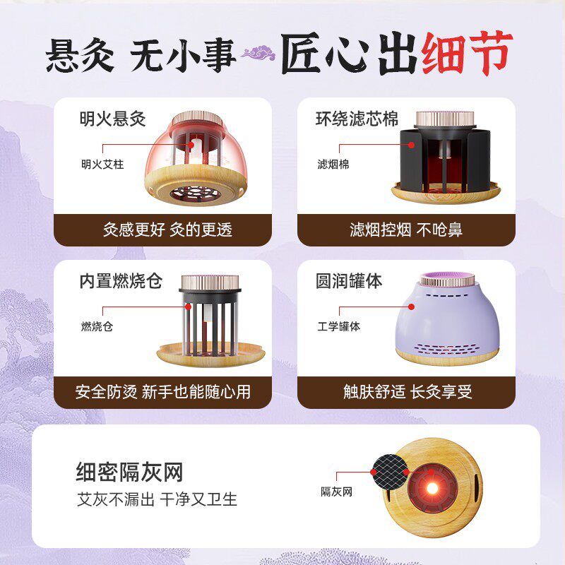 乌坊艾灸罐子多功能少烟艾灸艾草熏蒸艾柱便携随身带热敷全身用