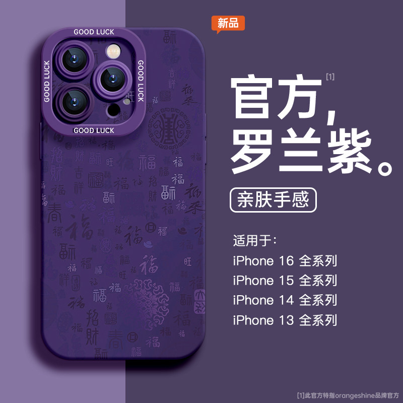 适用苹果16promax手机壳新款iphone16紫色16pro新年创意福15复古高级感14全包防摔13情侣12超火pm小众女款ins