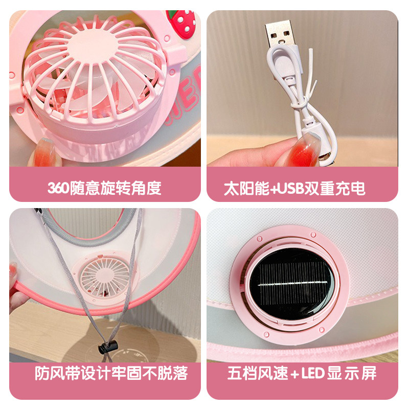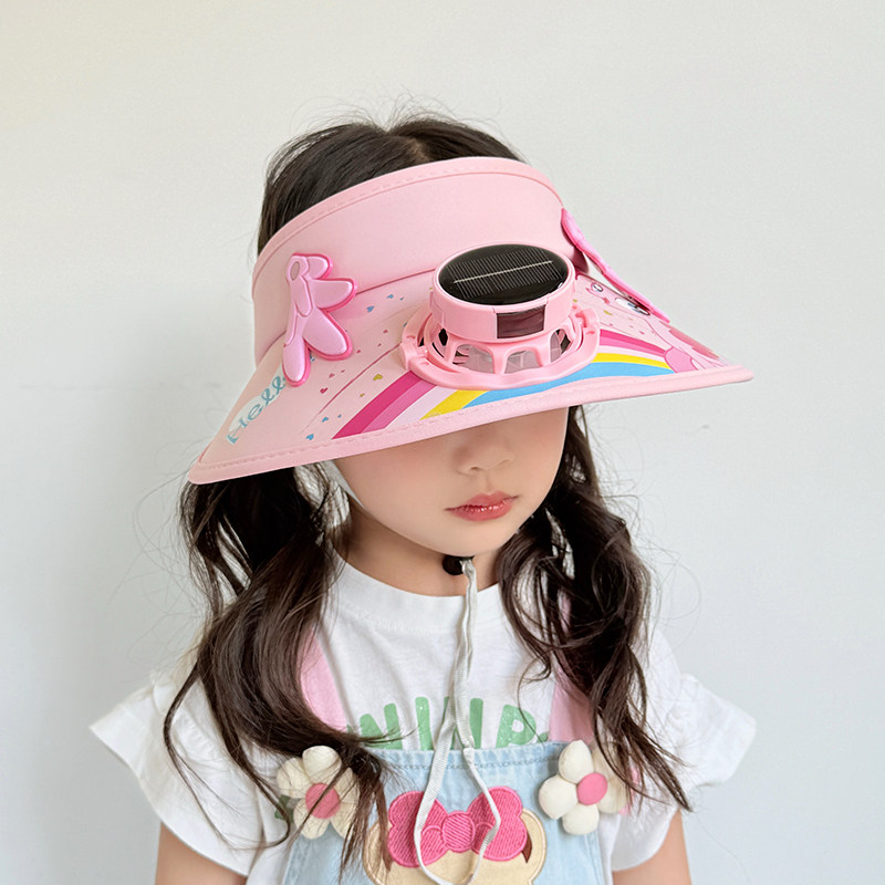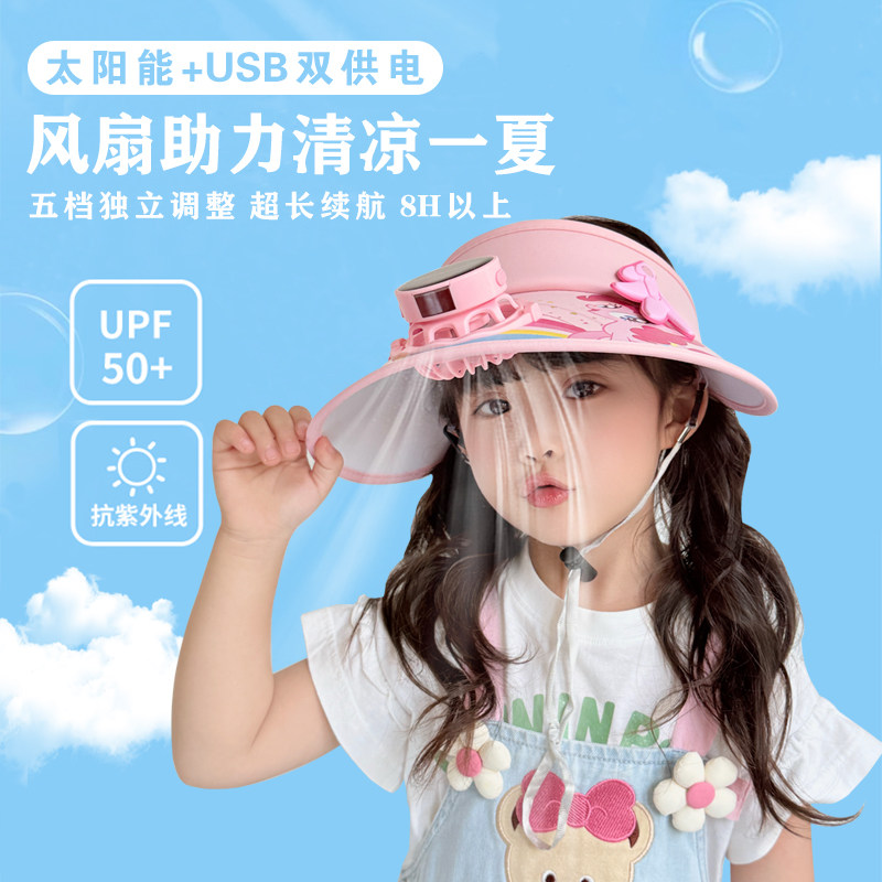 太阳能充电风扇帽儿童帽子夏季防晒帽子防紫外线大帽檐户外空顶帽