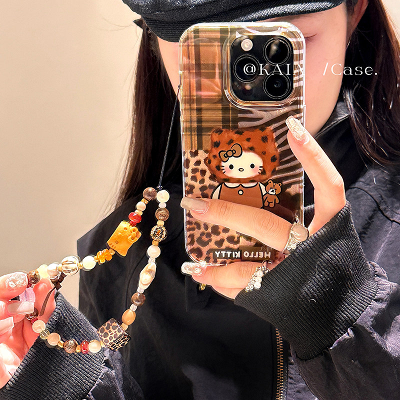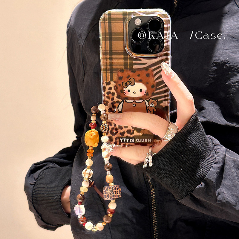 kaia 美拉德棕豹纹拼图哈喽kt适用iphone17promax手机壳苹果17新款14带挂绳15女13卡通14pro双层苹果12保护套
