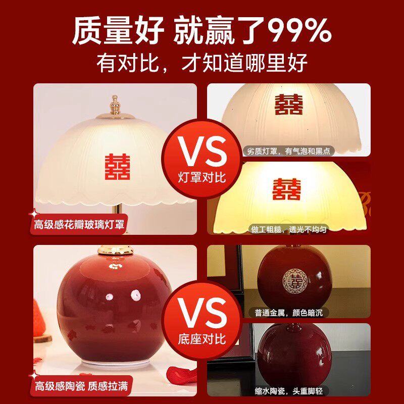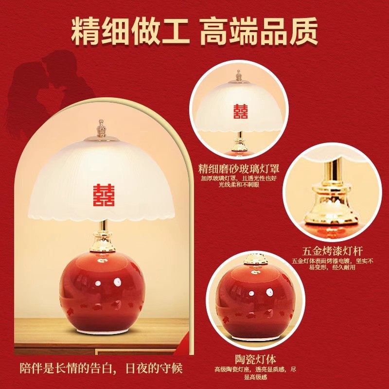 结婚台灯婚房床头灯一对喜灯酒红色陪嫁长明灯送新人新婚礼物婚礼