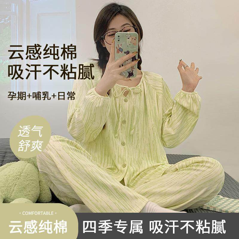 月子服纯棉春秋冬季产后12月份孕妇睡衣可外穿喂奶产妇哺乳家居服