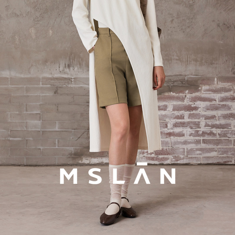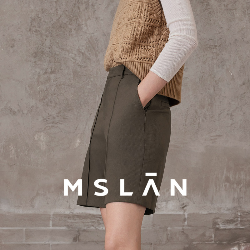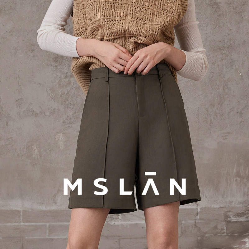 MSLAN法式复古小个子廓形西装裤宽松高腰五分直筒休闲裤MEAM6101