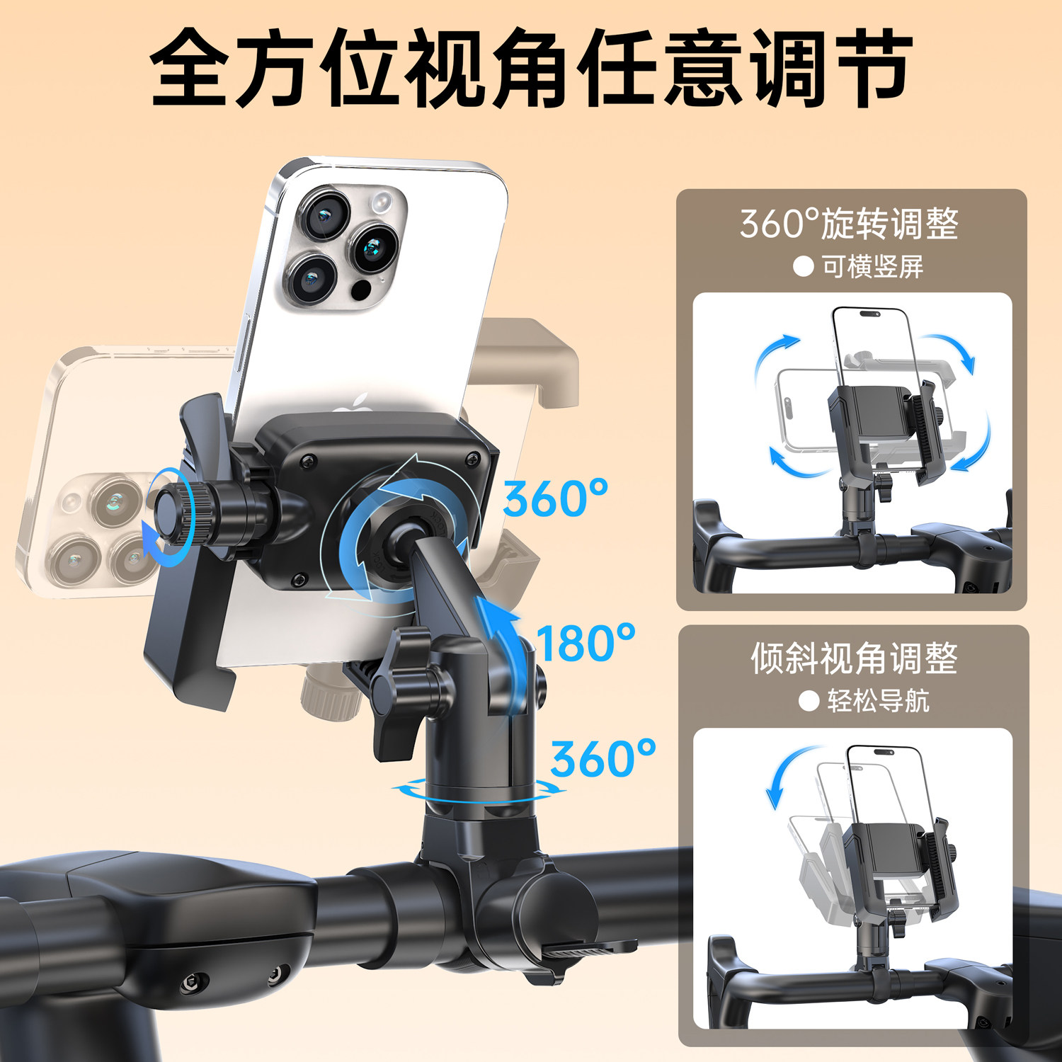 LRBH骑行手机支架2026新款拍摄导航公路车电动车电瓶车山地车自行车固定支撑带灯夜骑神器外卖装备