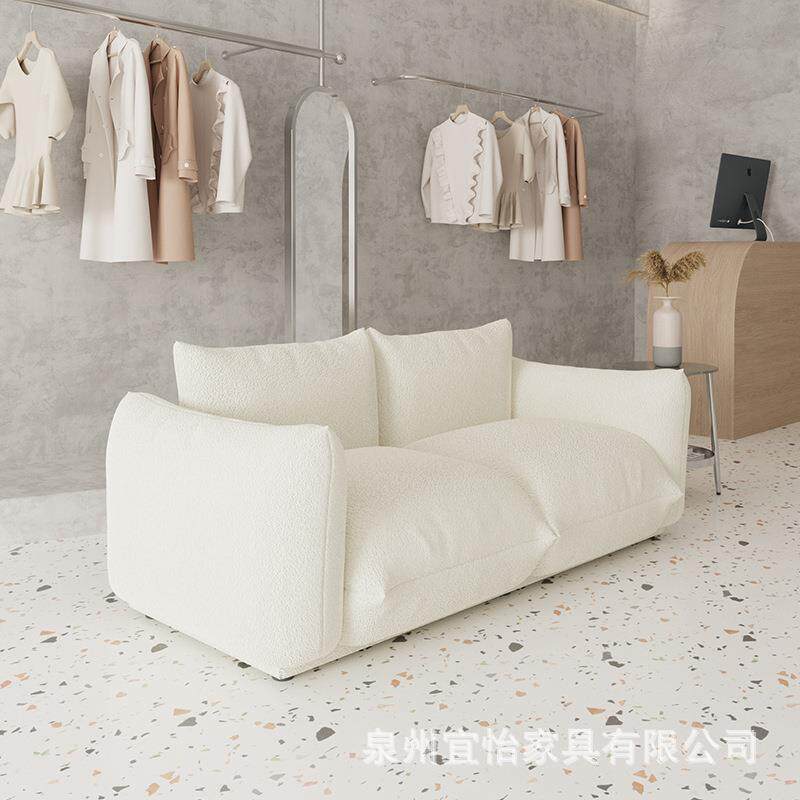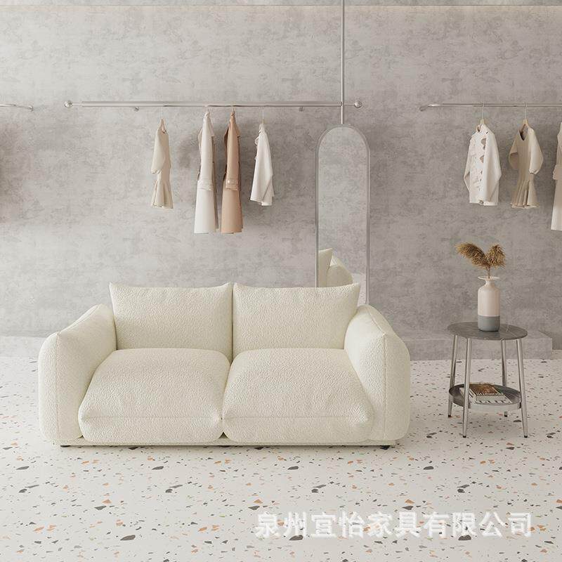 奶油风布艺沙发奶茶店休闲区接待沙发服装店休息区客厅布艺沙发