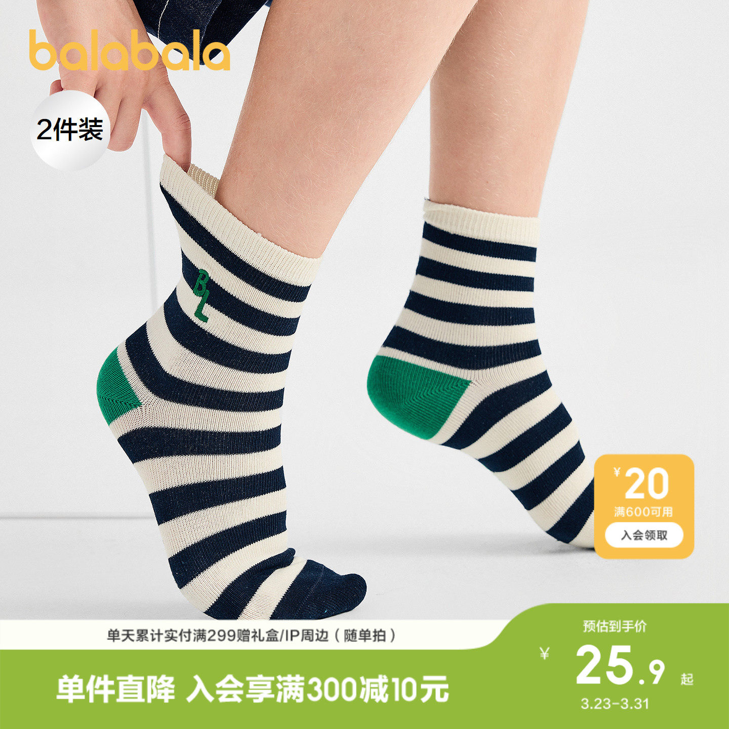 巴拉巴拉儿童袜子男童短袜女学生袜基础不勒脚两双装