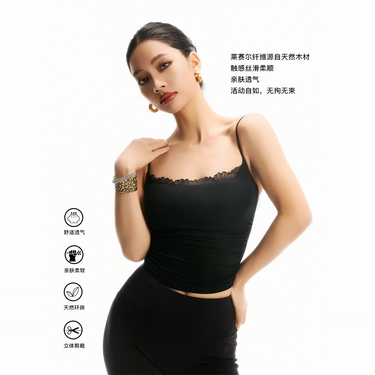 刘雯ubras蕾丝带胸垫内衣吊带背心夏外穿无袖t恤上衣女2026新款