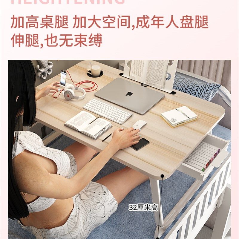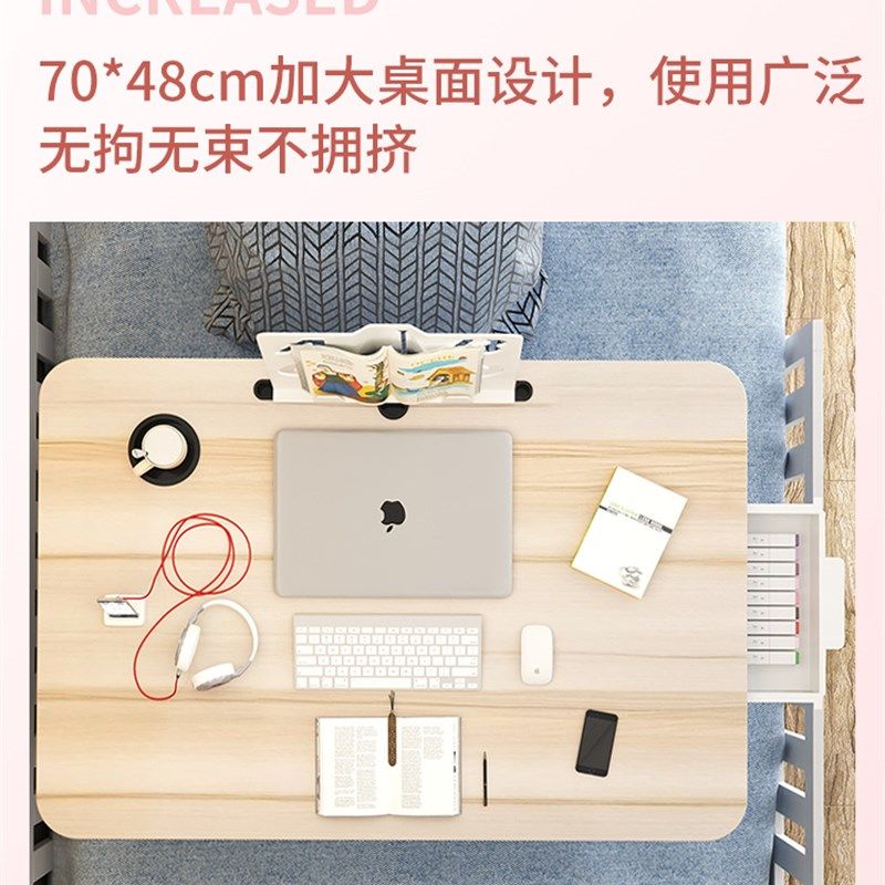 可升降折叠床上小桌子简约宿舍学生写字床上书桌学习调节高度支架家用卧室坐地飘窗懒人笔记本电脑办公小桌板