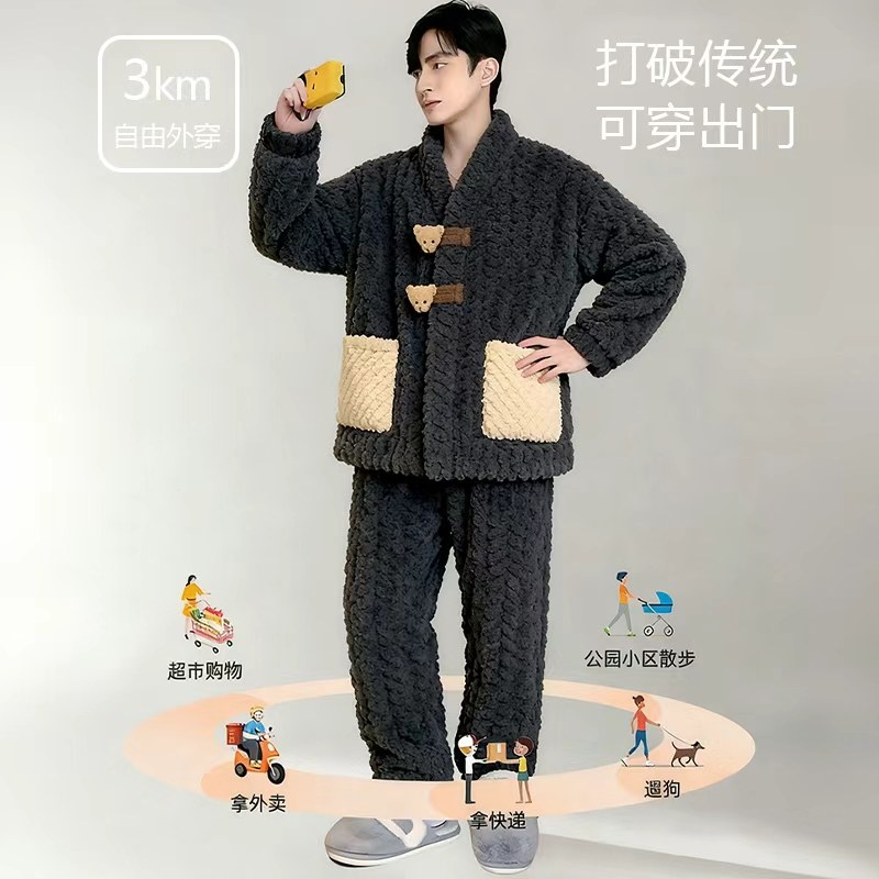 新款珊瑚绒睡衣男士秋冬款加厚套装加绒法兰绒男款冬季家居服大码