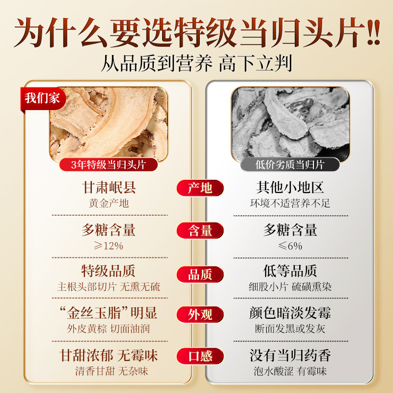 甘肃岷县特级当归头片正品中药材官方旗舰店黄芪党参泡水补气养血