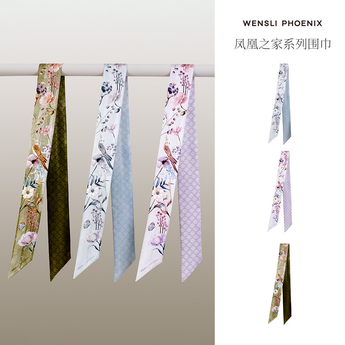 【凤凰之家】万事利高端新品100%桑蚕丝斜巾女真丝丝巾-提笼逗趣