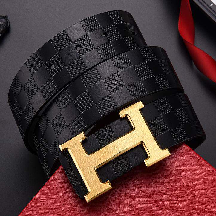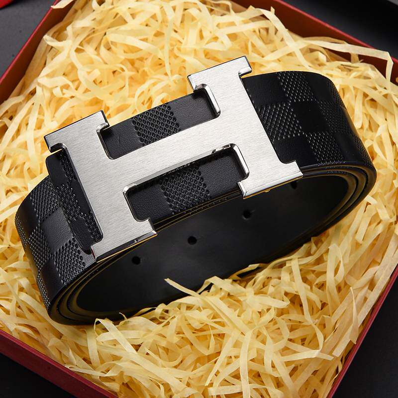 爱马男仕高档纯铜扣皮带男士真皮头层牛皮平滑扣腰带青年商务内穿