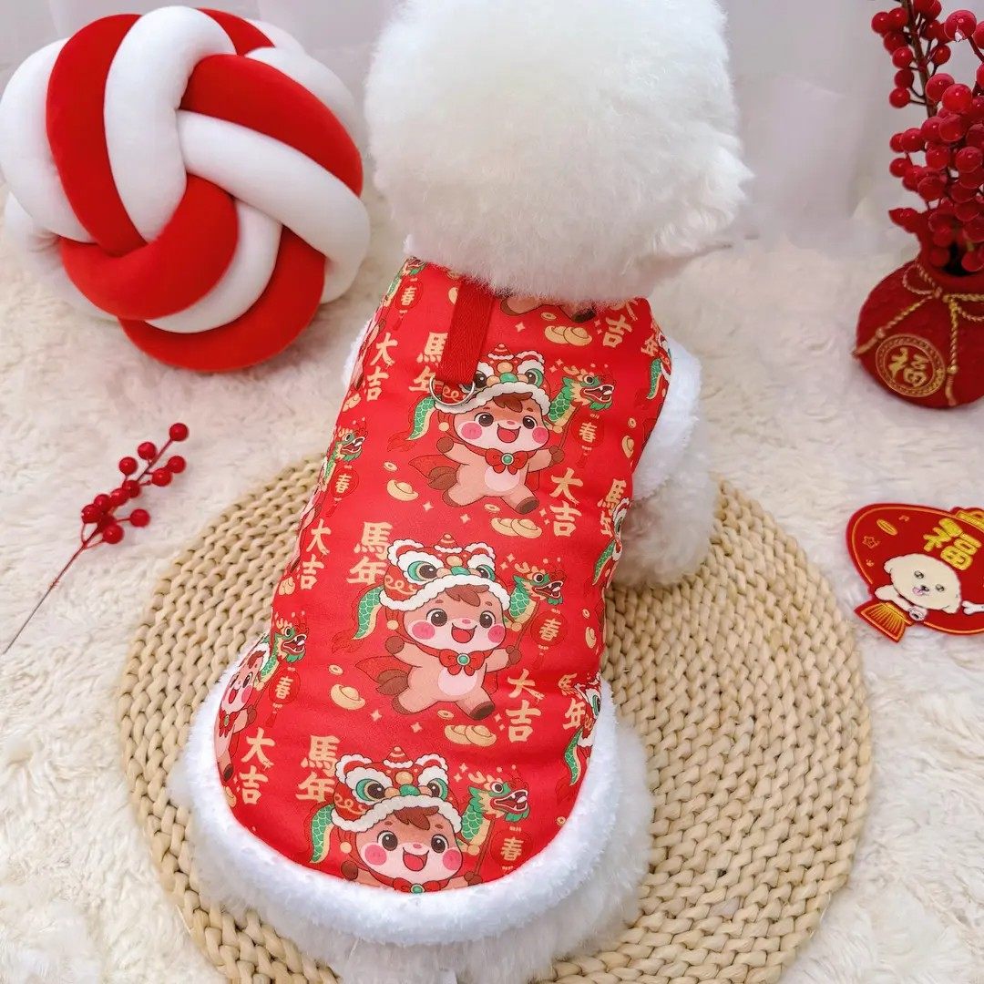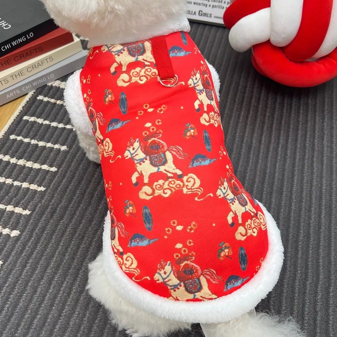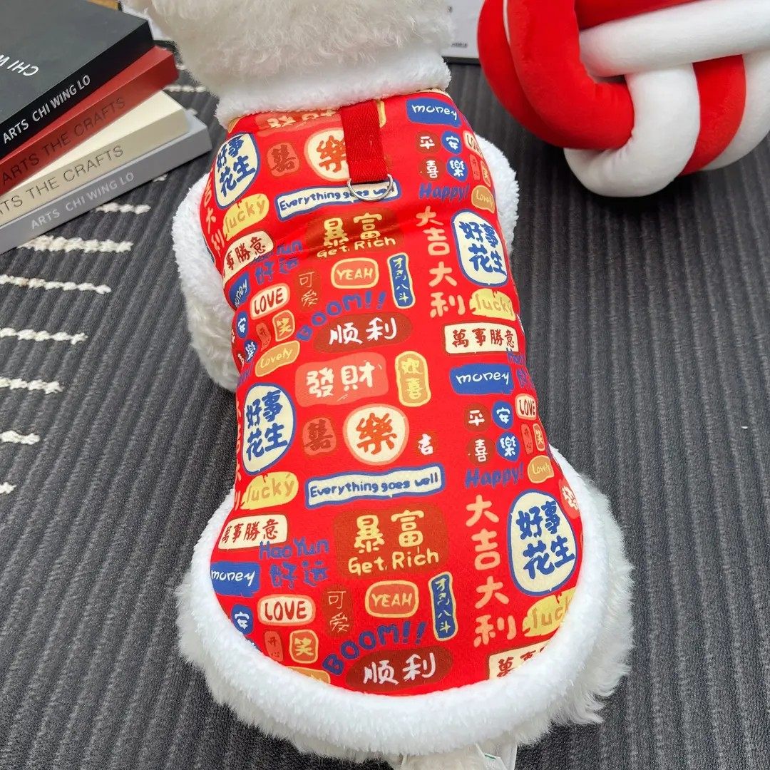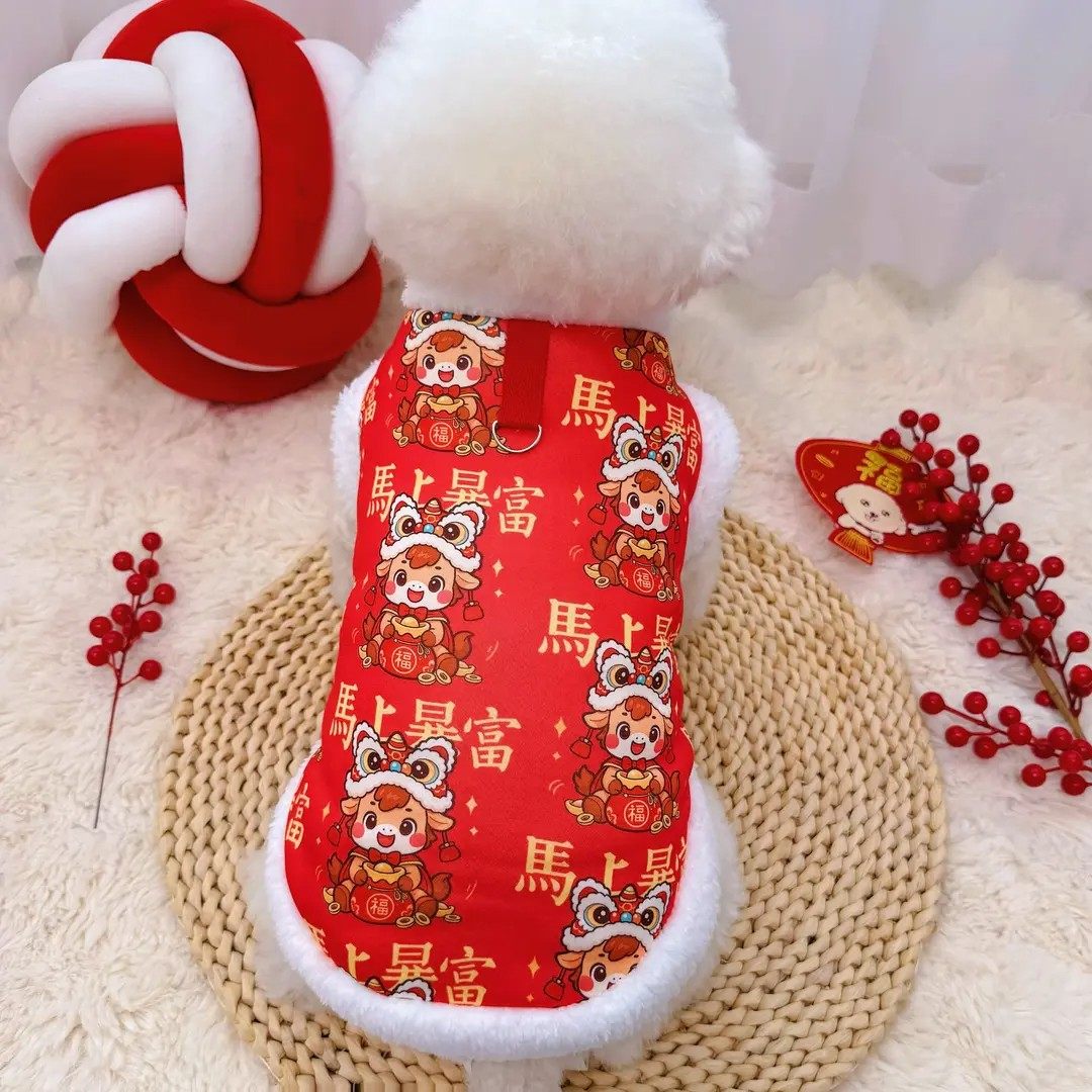 喜庆狗狗新年衣服冬季泰迪加厚保暖大型犬马年过年猫咪棉服欢喜