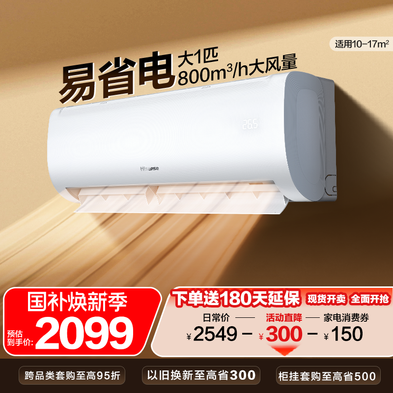 海信空调大1.5匹1匹易省电家用挂机一级以旧换新补贴官方旗舰店