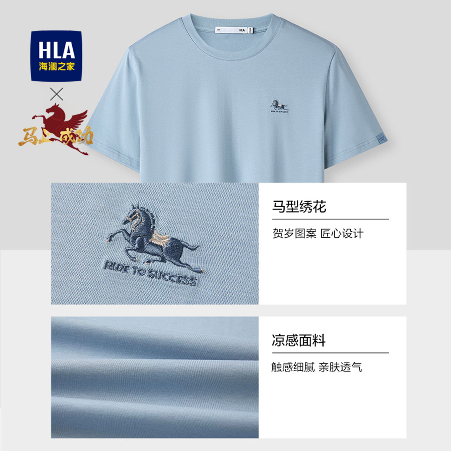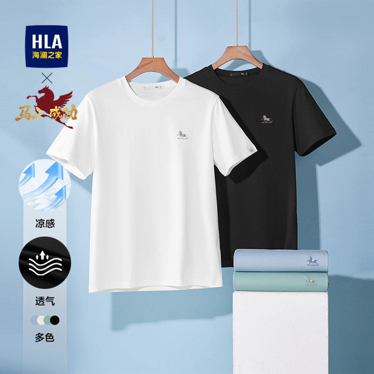 HLA/海澜之家马年贺岁系列短袖T恤2026春秋新款圆领凉感透气短t男
