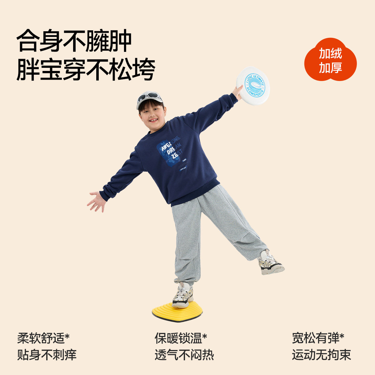 小猪托尼男童加绒卫衣秋冬款胖童装上衣上装男大童大码新款上衣潮