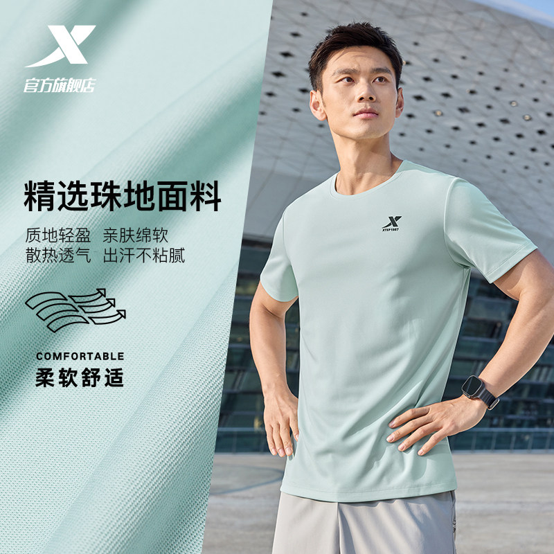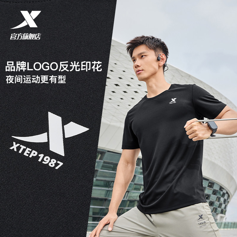 特步速干T男夏季宽松短袖冰丝户外跑步T恤透气上衣男士健身运动服
