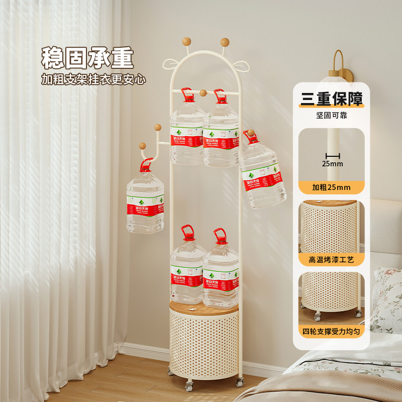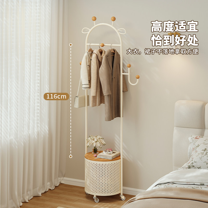 可移动卧室挂衣架铁艺不占空间落地衣架房间家用脏衣篮衣帽架简易