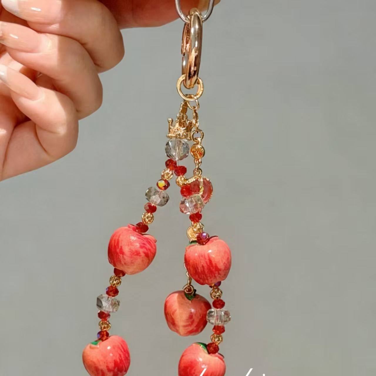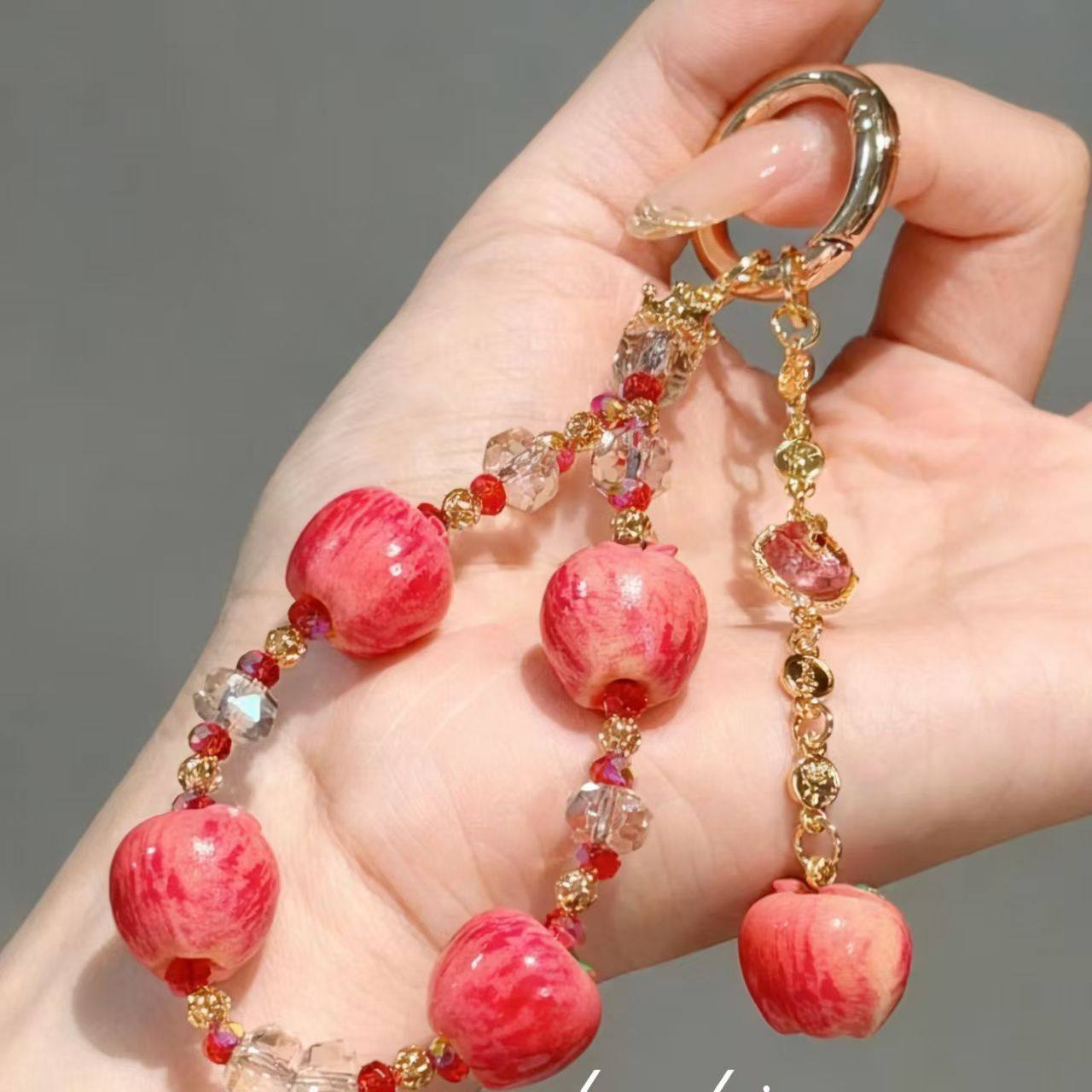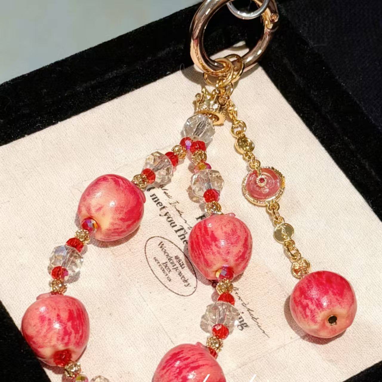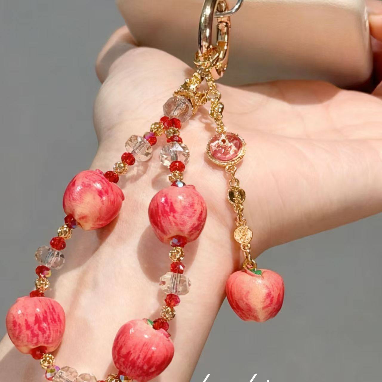 【平安喜乐】秋冬仿真红苹果闪钻手机链超仙甜美手机挂件DIY饰品