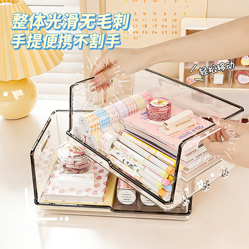 翻盖式桌面收纳盒透明亚克力防尘整理盒卧室宿舍办公室带盖杂物筐