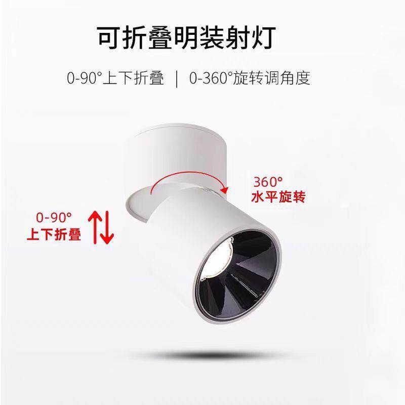 LED明装折叠射灯天花灯家用洗墙可调角度商用吸顶照画筒灯免开孔