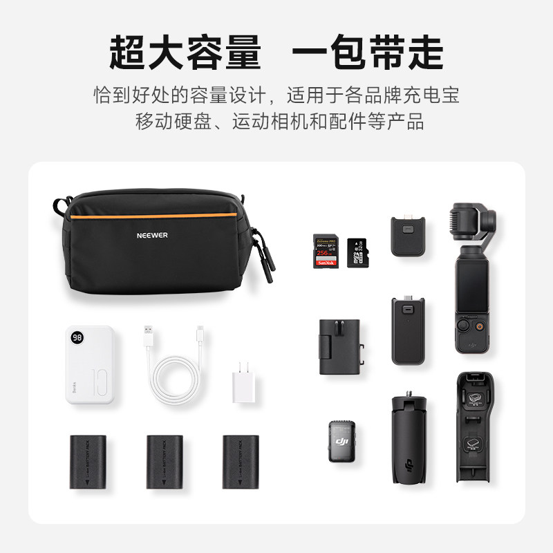 NEEWER/纽尔数码收纳包各品牌数据线充电宝充电器耳机移动电源硬盘防震包u盘u盾SD卡鼠标旅行斜跨配件包大号