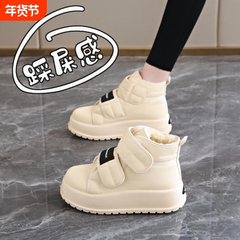 15HZ的鲸厚底雪地靴女2025新款防滑棉鞋女一脚蹬冬季雪地棉女鞋子