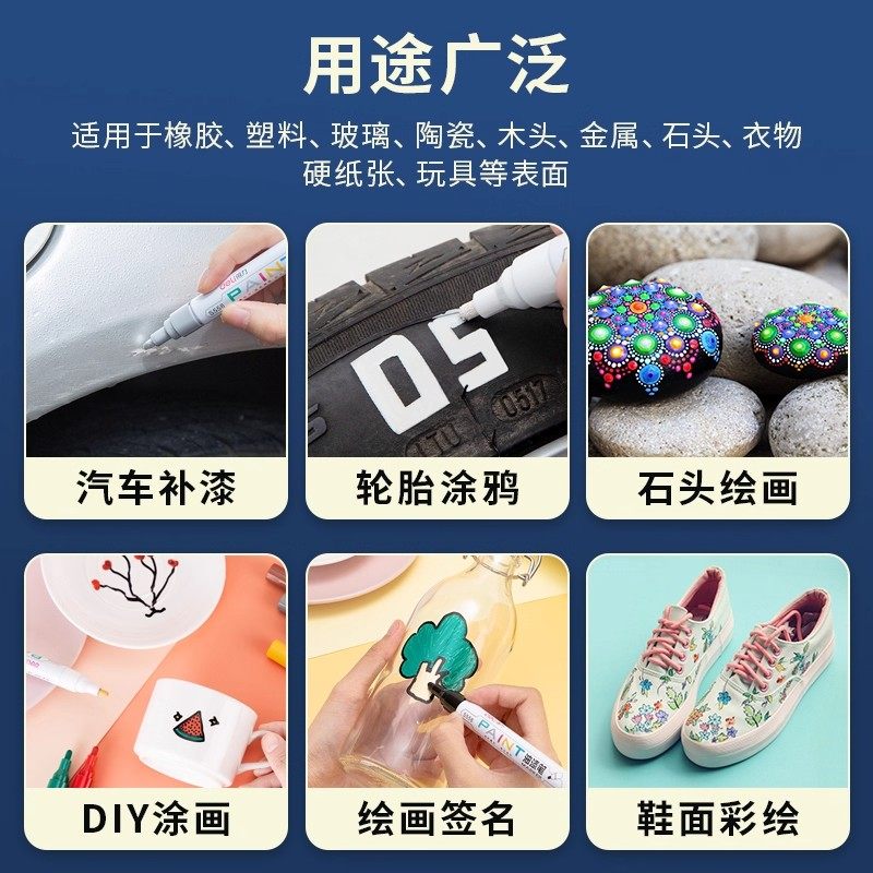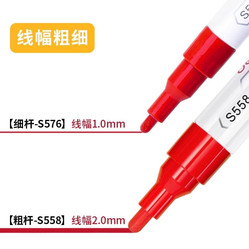 得力油漆笔S558轮胎涂鸦笔防水不掉色白色记号笔油性马克笔DIY画鞋笔笔金色黑色工业补漆笔汽车用白色高光笔