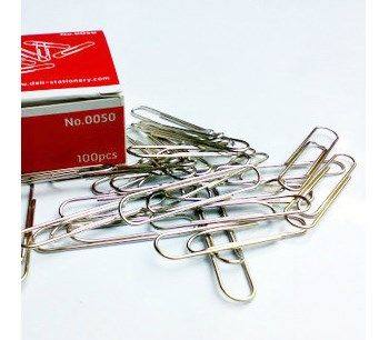得力0050大号回形针加厚电镀金属曲别针50mm学生用书签夹子创意别针日常学习用品100枚/盒