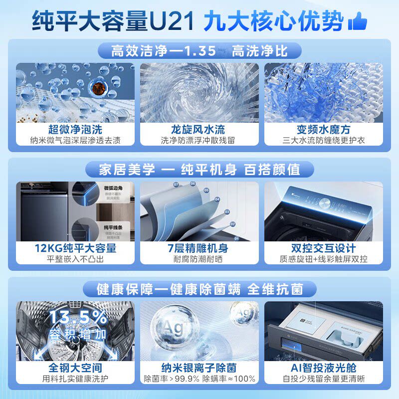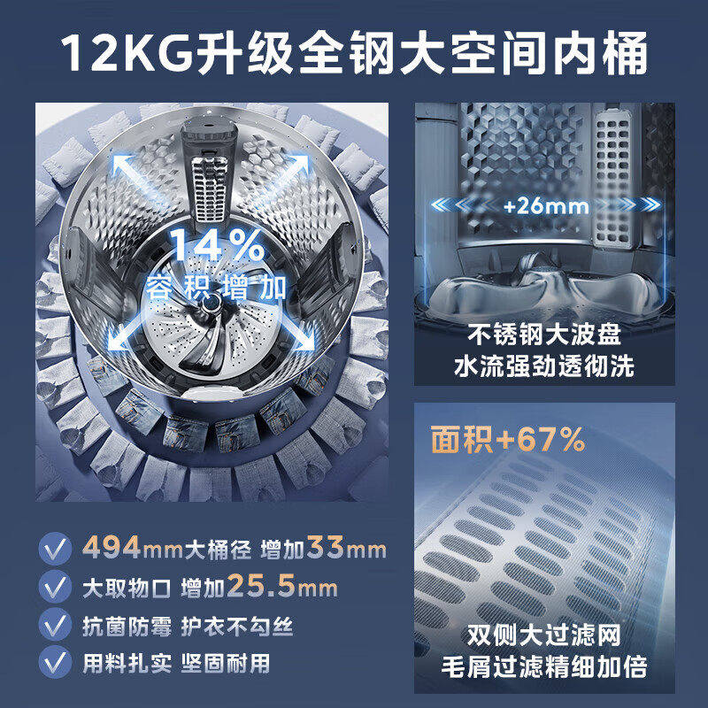 小天鹅洗衣机水魔方波轮全自动家用10/12公斤变频洗脱一体TB12U21