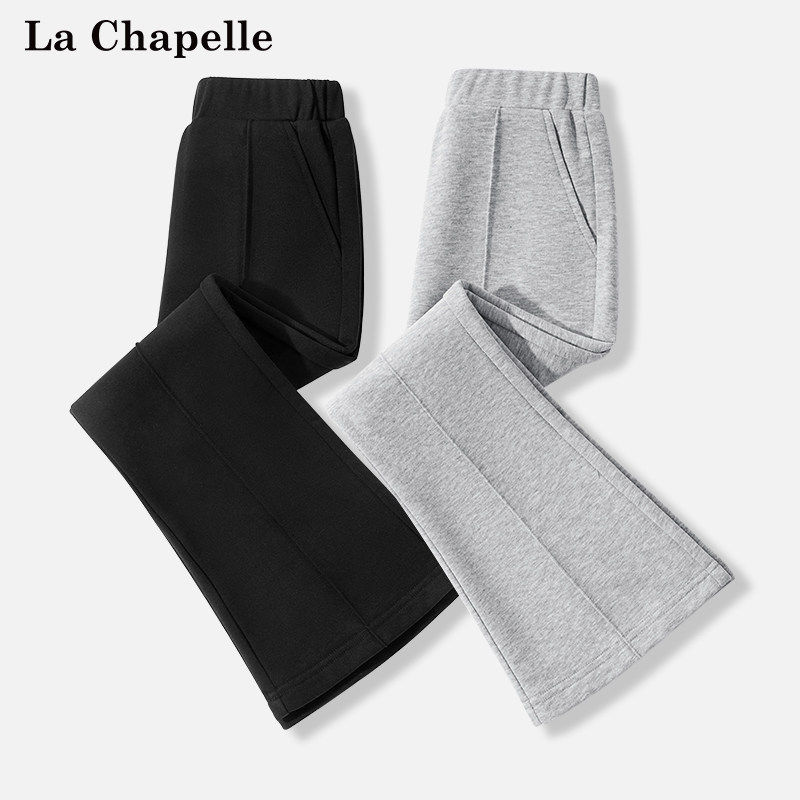 拉夏贝尔女童喇叭裤儿童2025新款女孩黑色加绒微喇长裤大童裤子冬