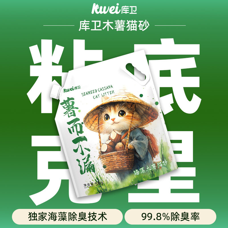 库卫木薯猫砂除臭吸水植物猫砂无尘不粘底易结团防臭纯植物木薯砂