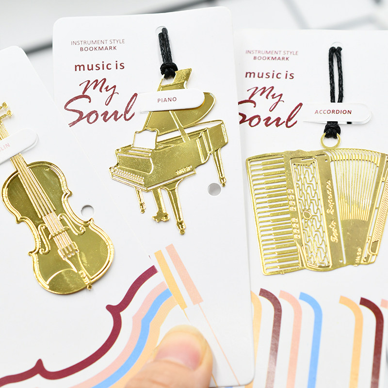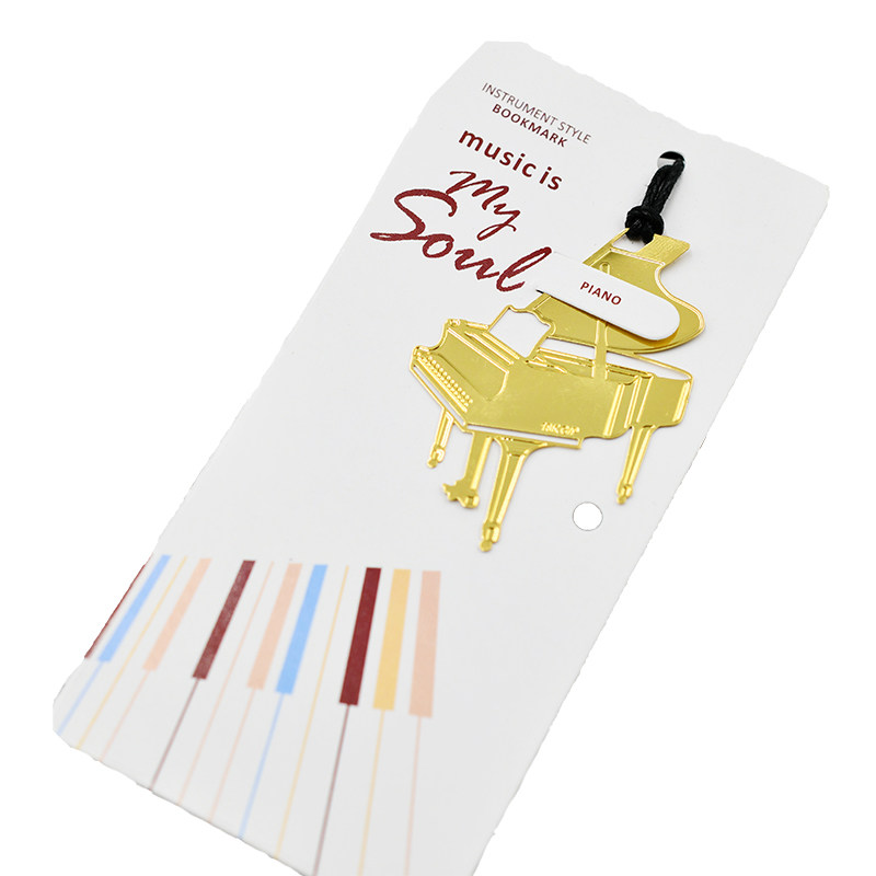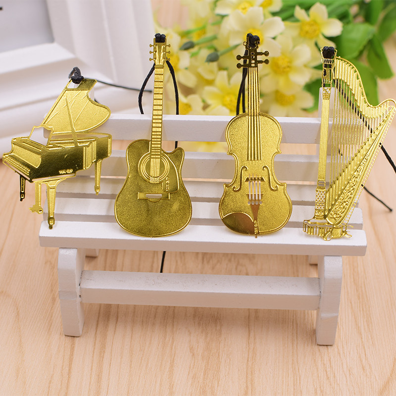 音乐文具三角钢琴书签精美镂空金属挂绳乐器书签吉他小提琴书签