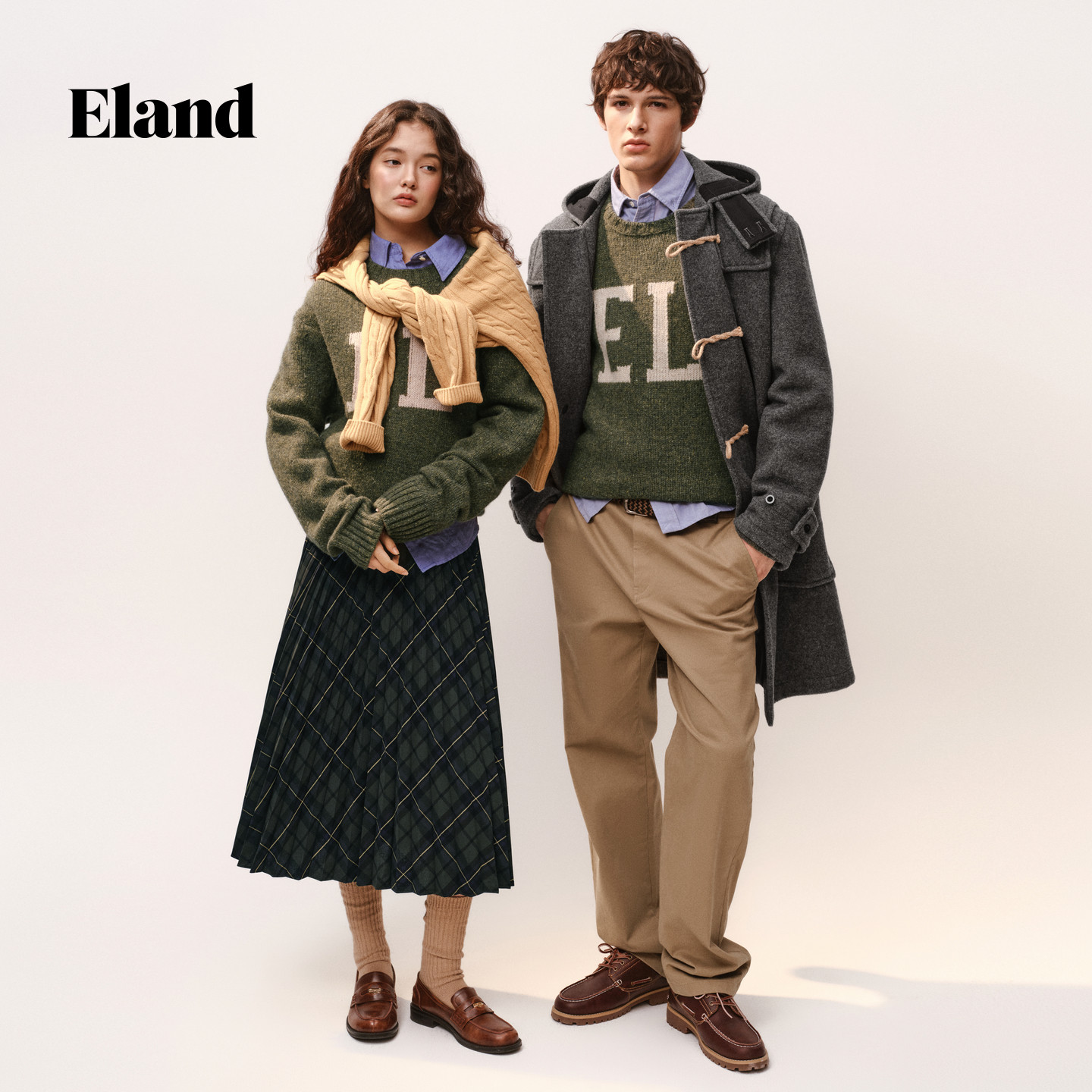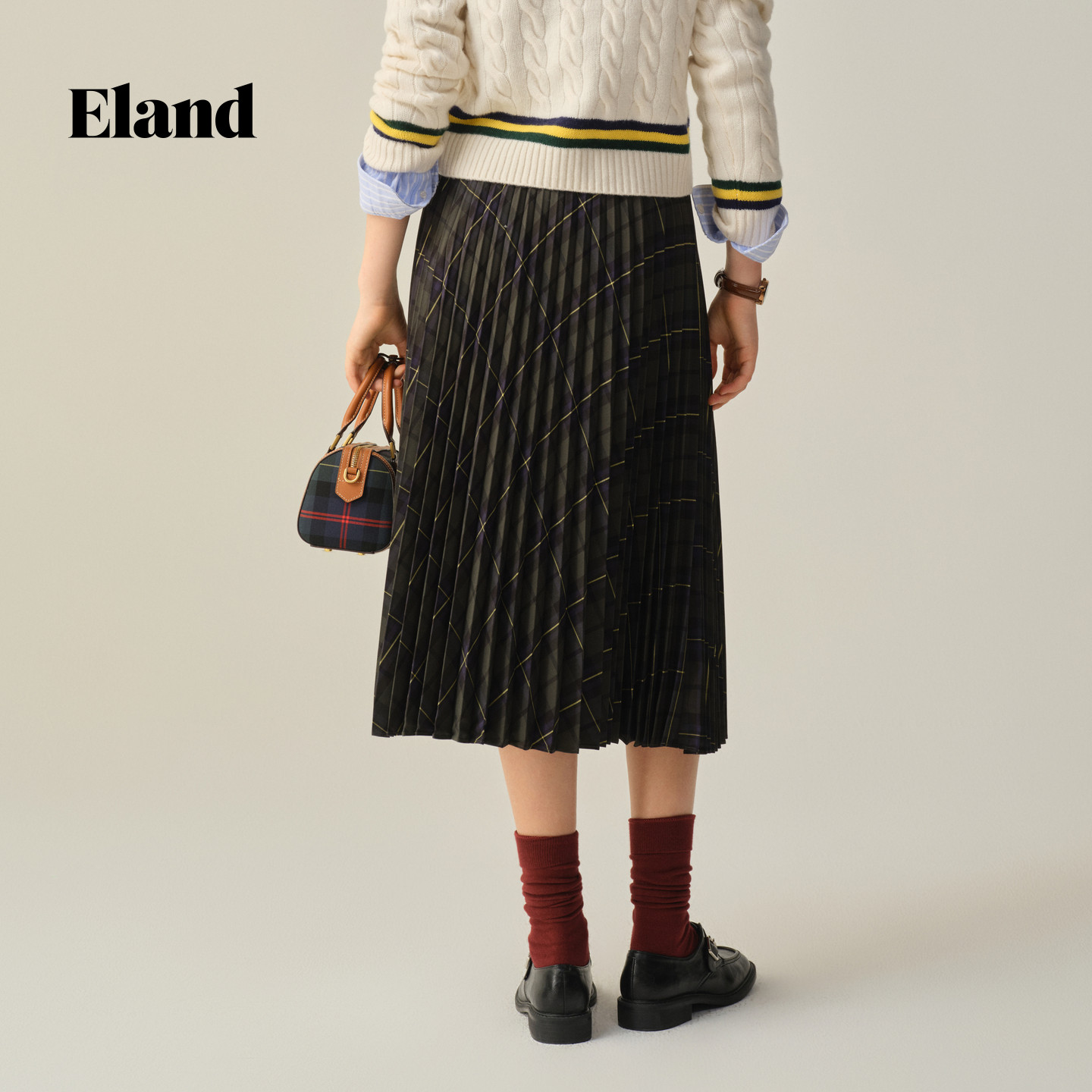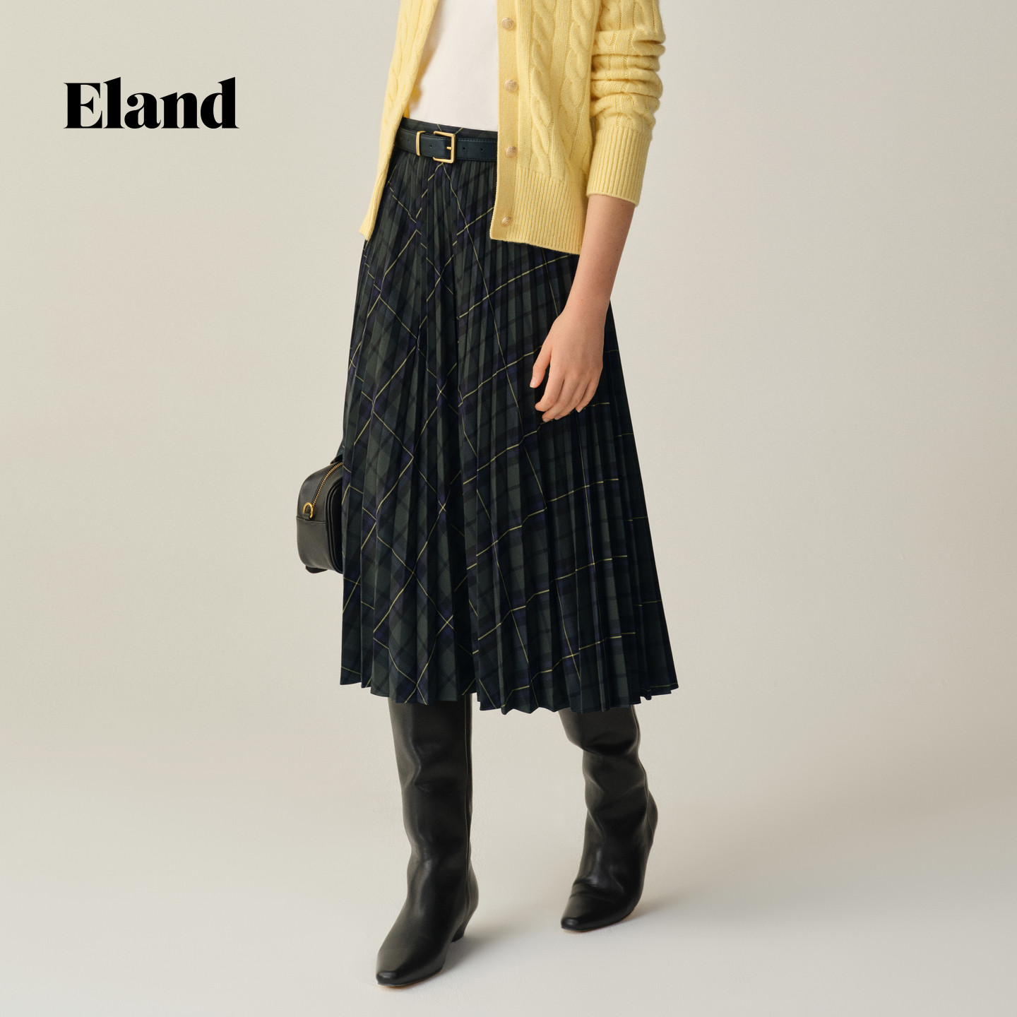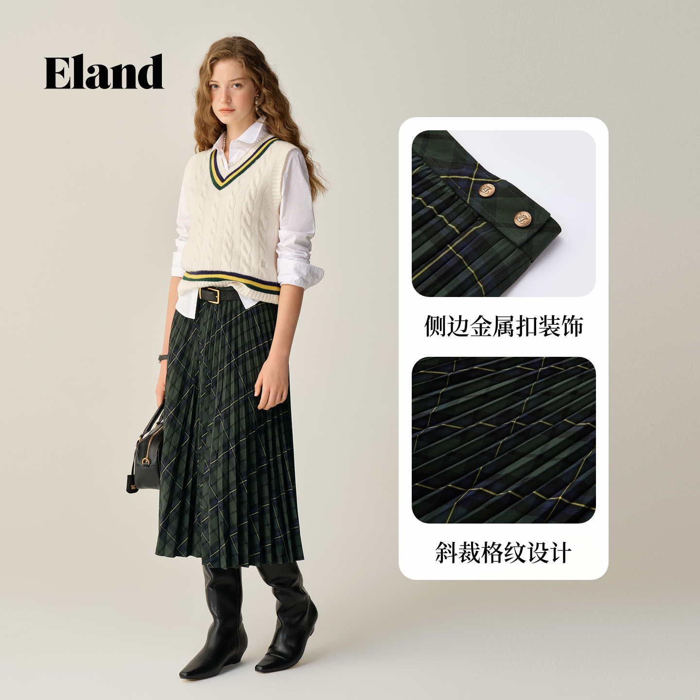 Eland衣恋半身裙女复古伞裙式中长裙休闲通勤裙子2025秋季新款