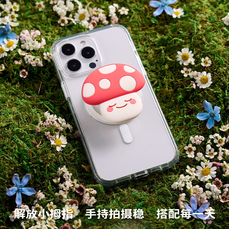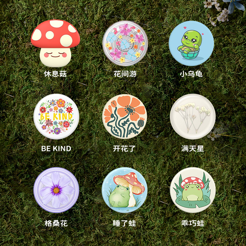 【草坪集会】PopSockets泡泡骚磁吸式气囊手机支架苹果iPhone17/16ProMax/Pro 硅胶磨砂 休息菇小乌龟乖巧蛙