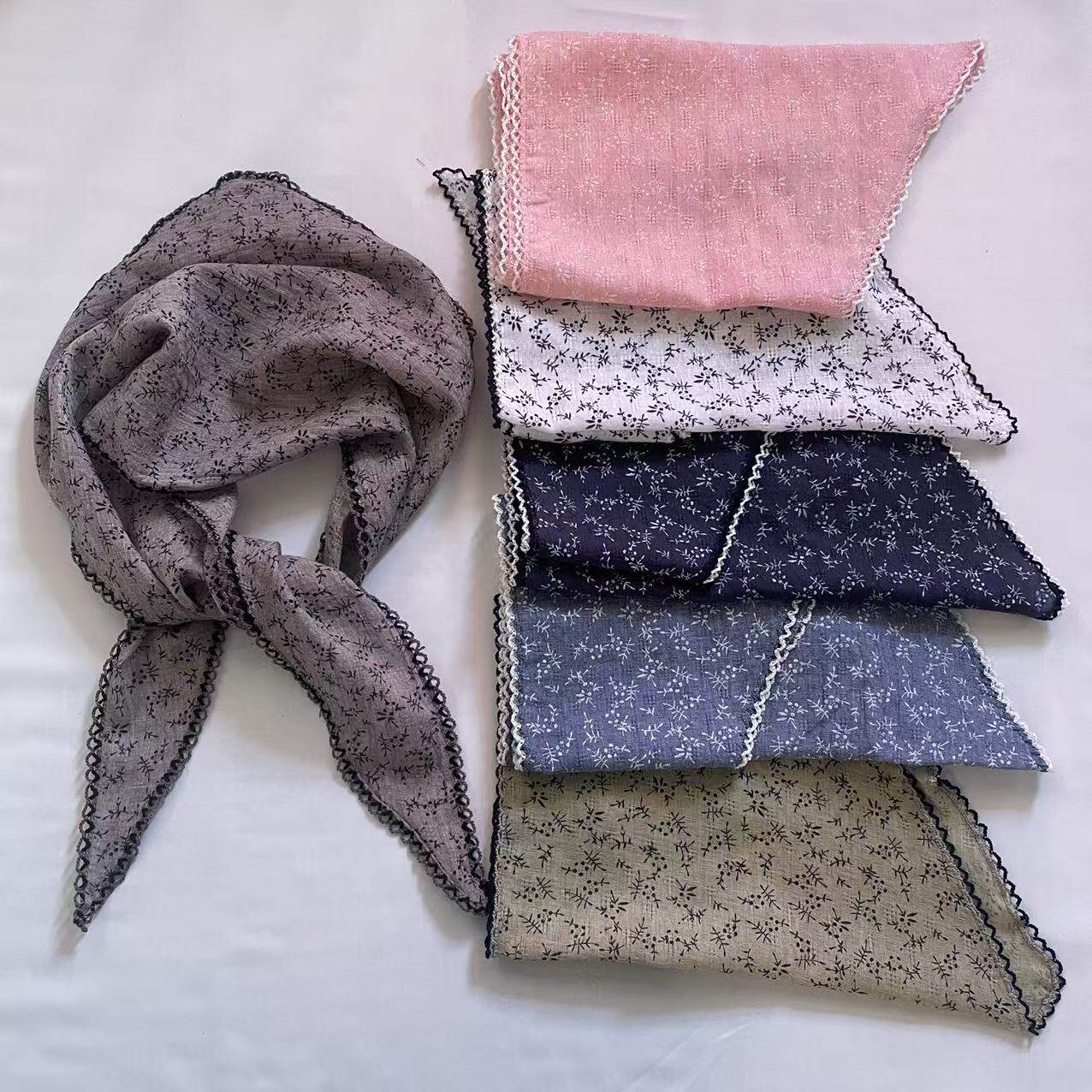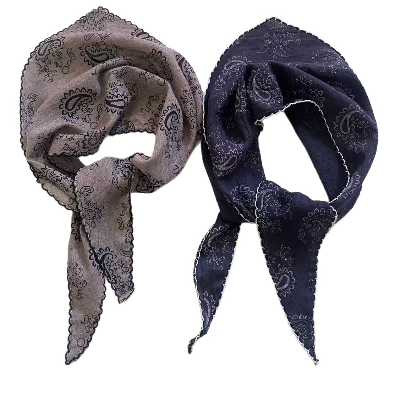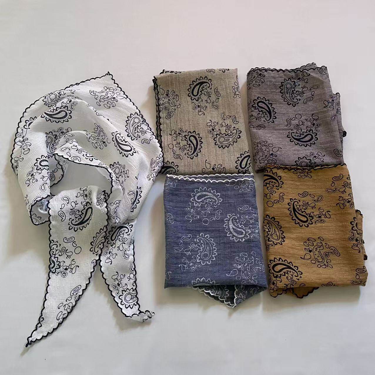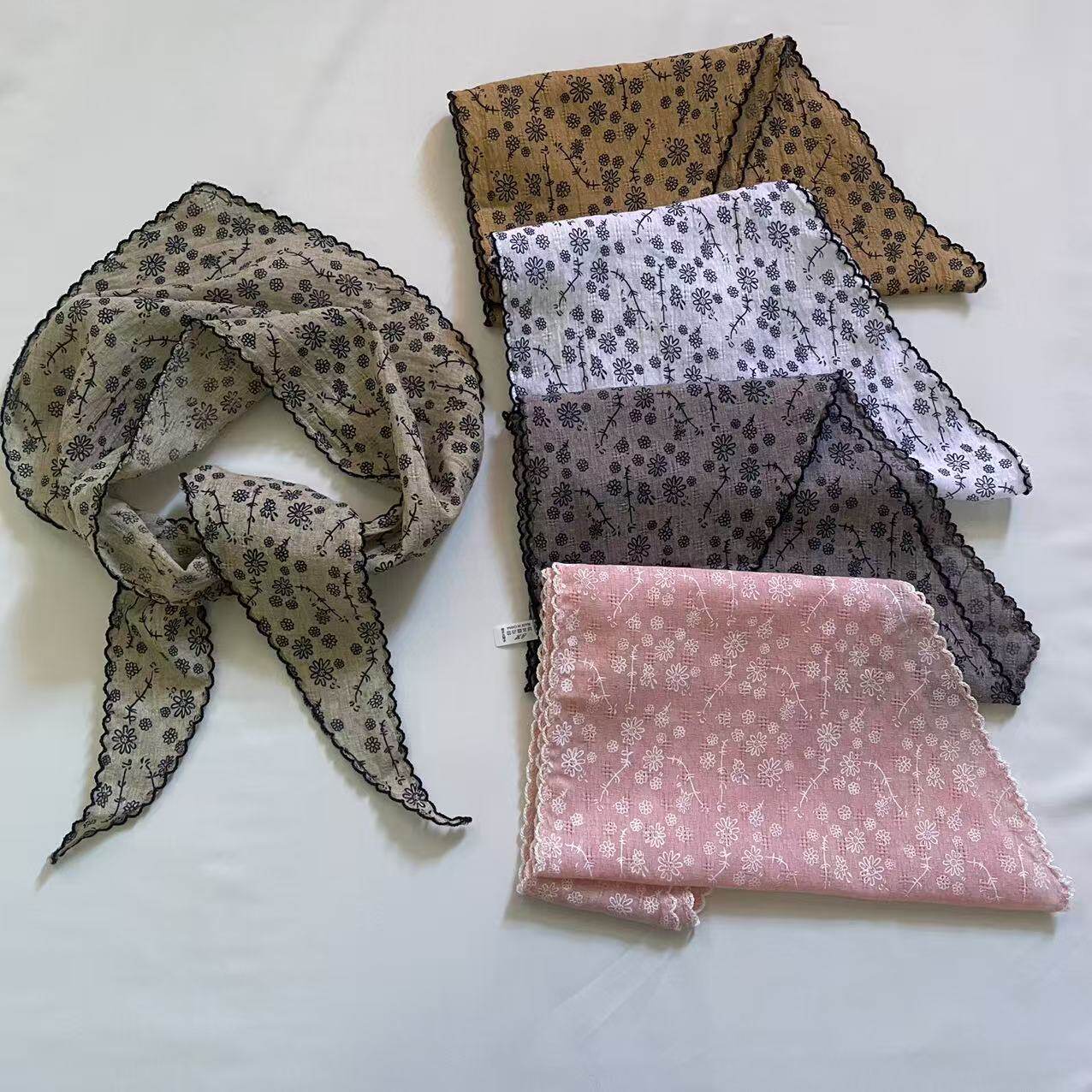 日系棉麻三角巾丝巾女春秋韩国小领巾装饰时尚小碎花腰果百搭头巾