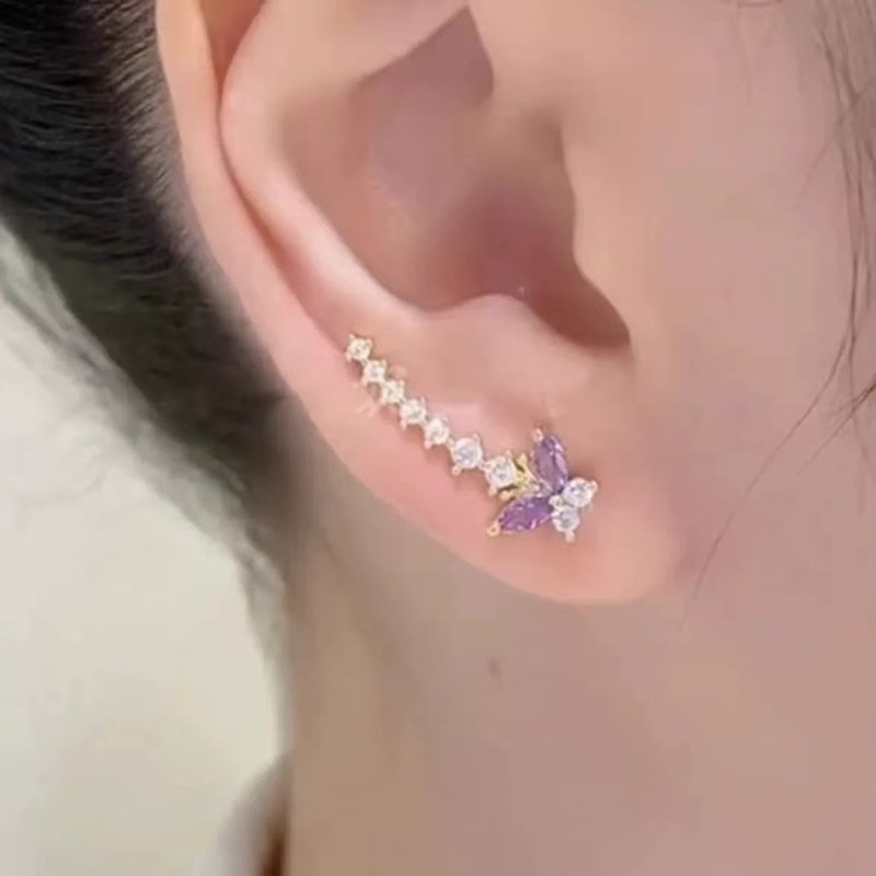 设计感小众气质优雅紫色蝴蝶耳钉新款爆款轻奢百搭时尚耳环女