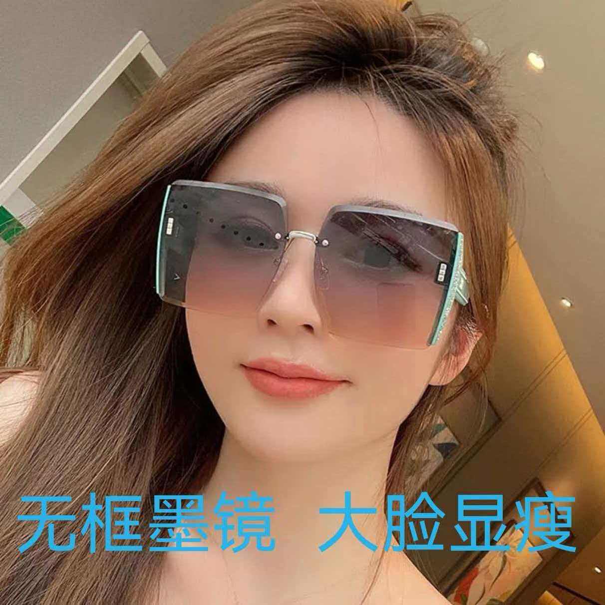 ELMER/爱尔玛网红方形无框太阳镜个性墨镜女大脸显瘦时尚眼镜大框