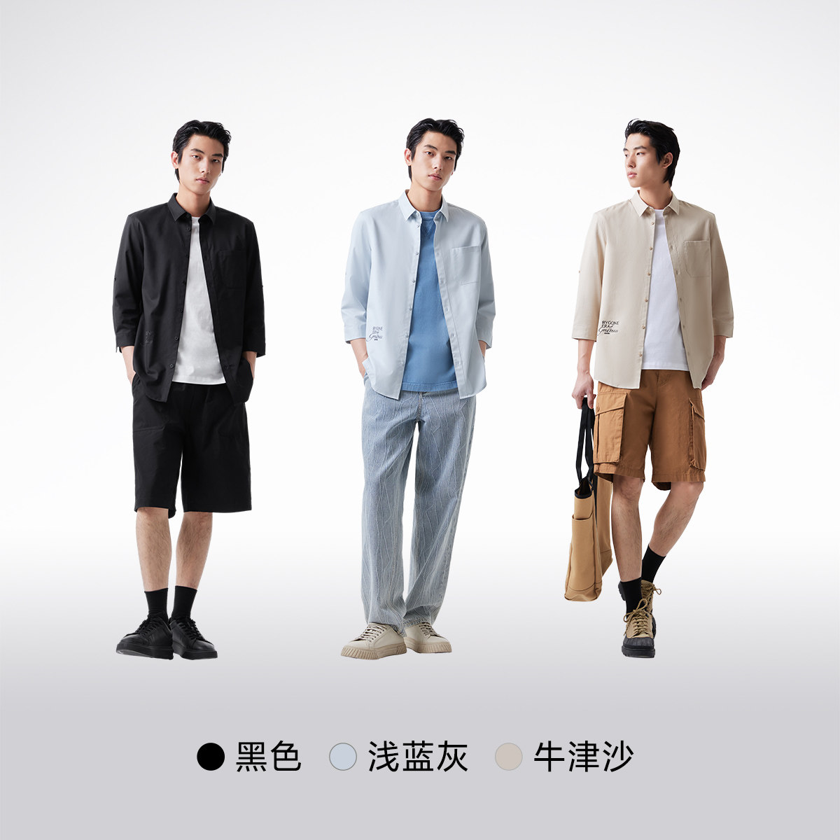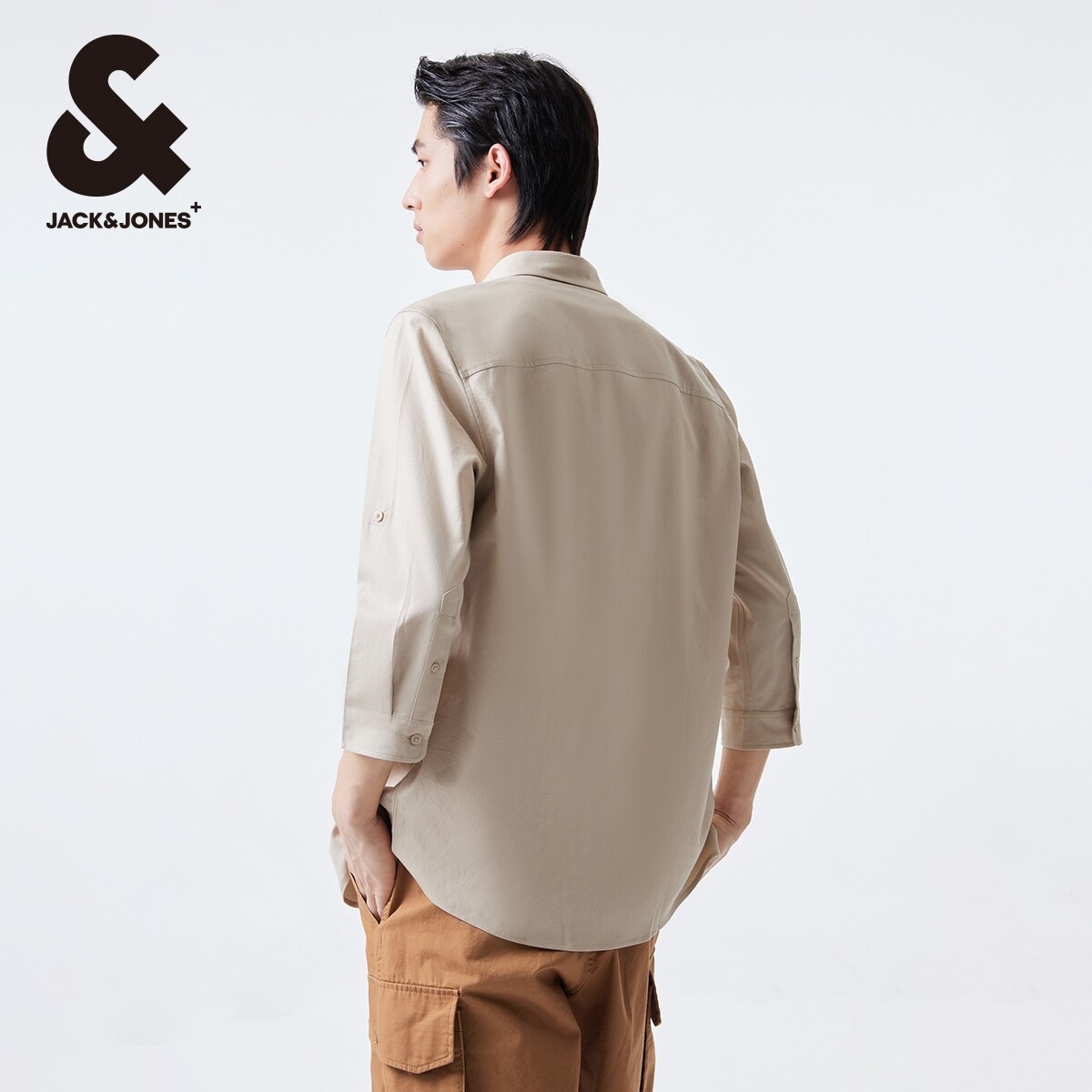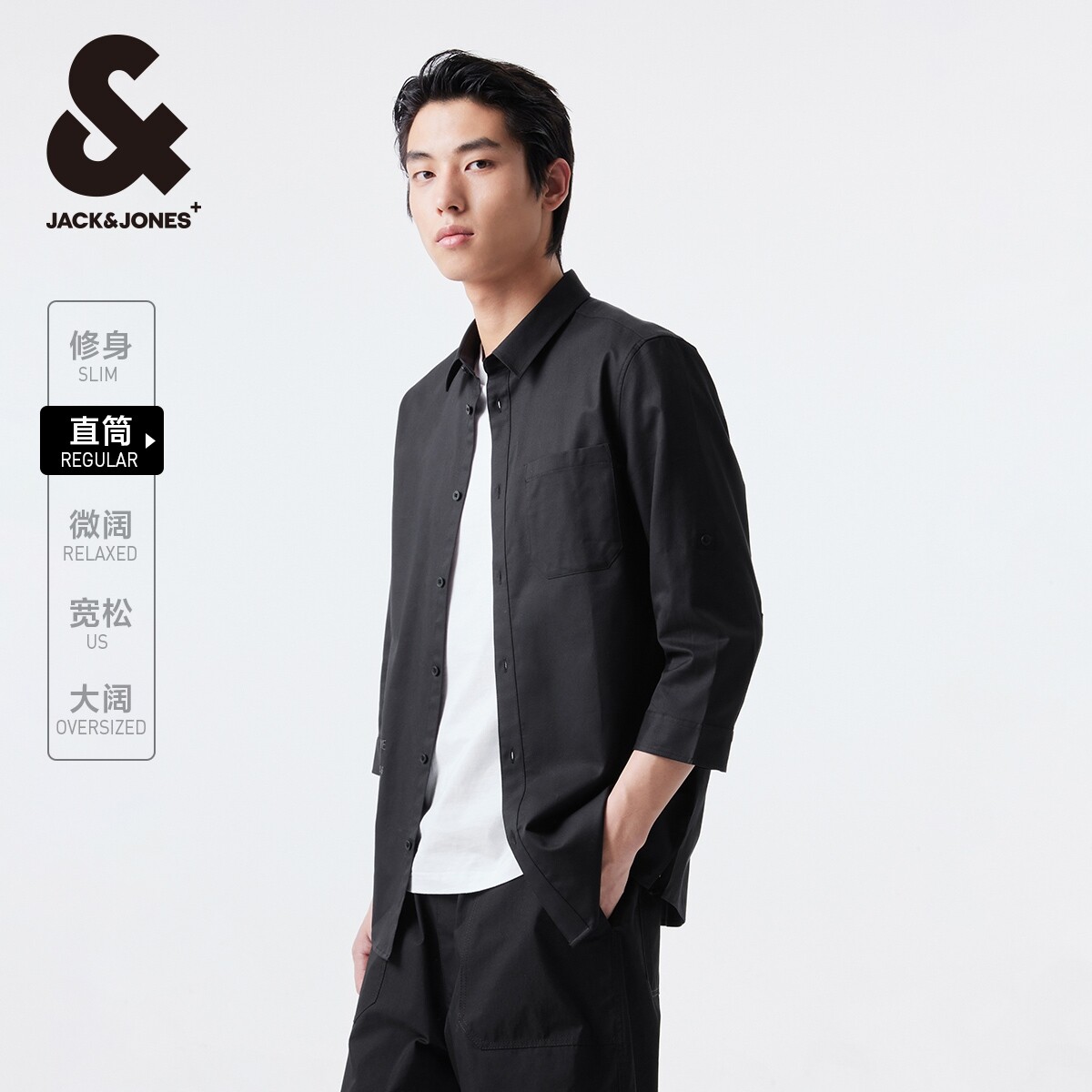 杰克琼斯奥莱男装夏季新款衬衣含天丝休闲可调节翻领七分袖衬衫男