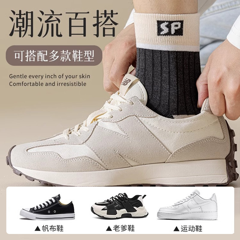 袜子男士中筒秋季防臭纯透气棉冬季秋天加厚款潮运动长袜白色吸汗